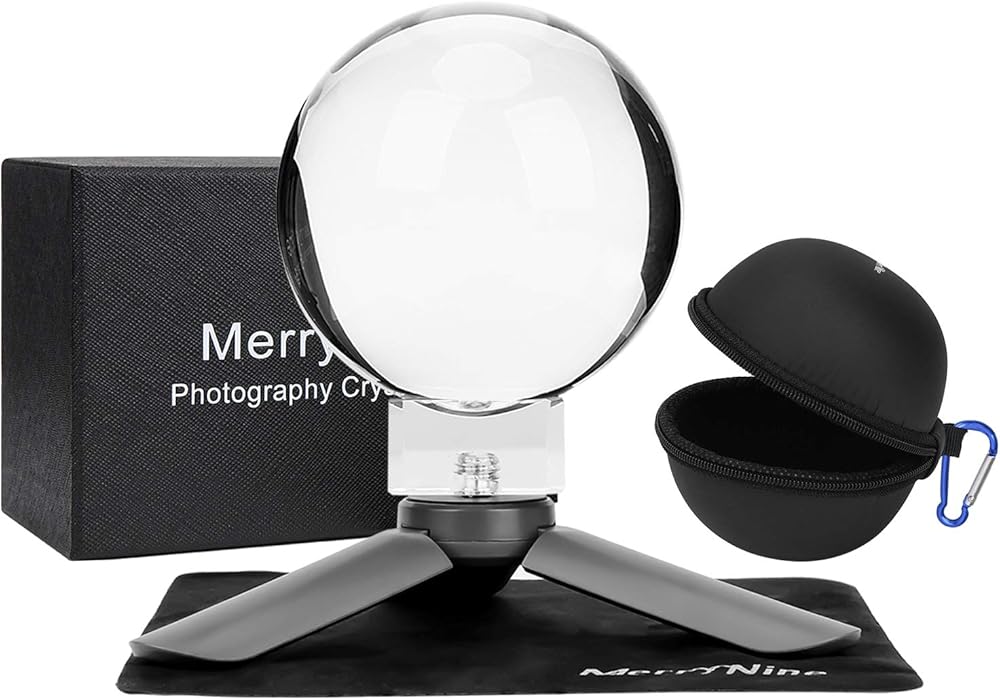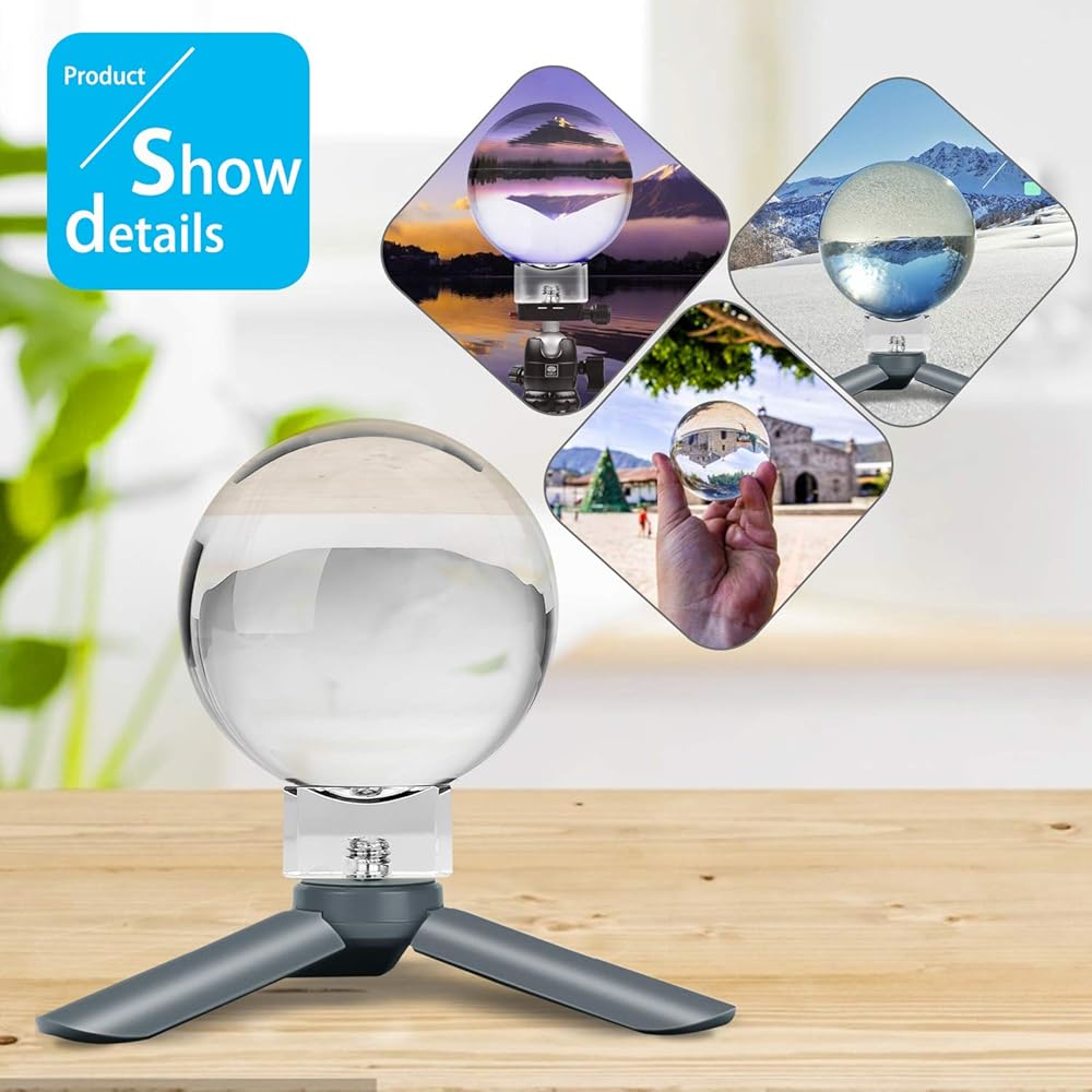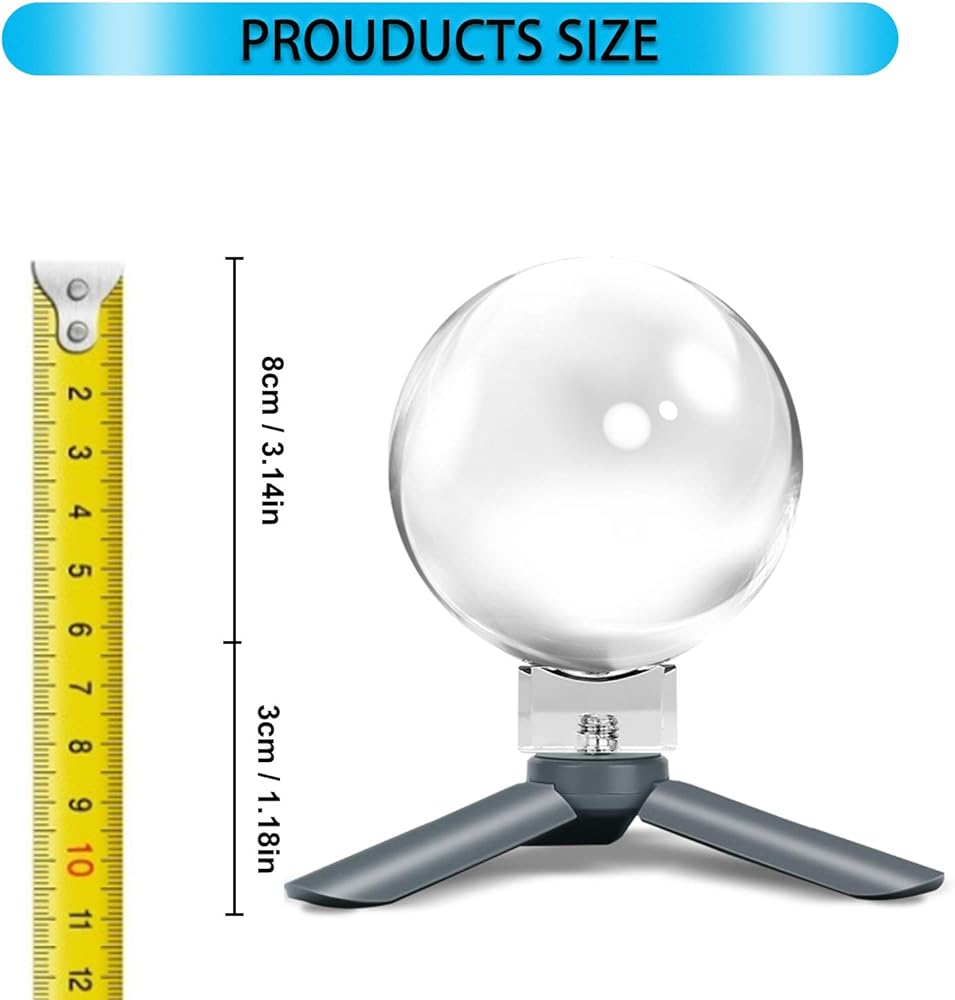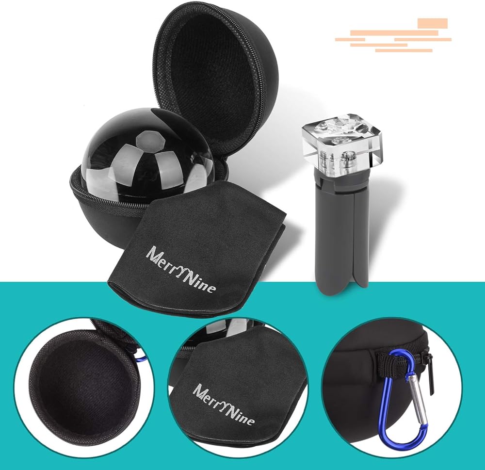 كرة تصوير كريستالية من MerryNine K9، كرة كريستال بعدسة K9 مع حامل ثلاثي صغير، قاعدة كريستالية لواجهة الكاميرا العالمية وحقيبة، لتعليم الديكور الفني لفيزياء الطيف الضوئي، (80 مم)
