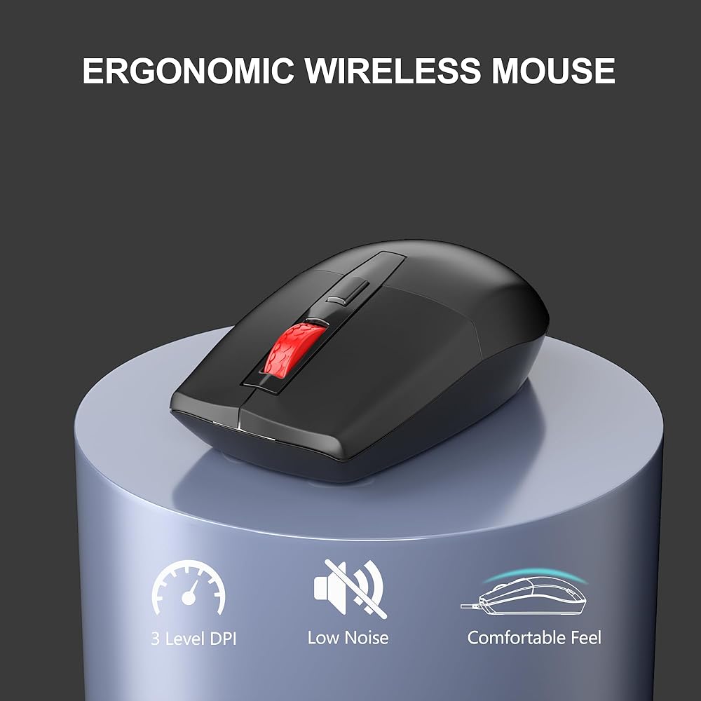 • ماوس لاسلكي بصري: 3 DPI قابلة للتعديل - 800/1000/1600، لتلبية الاحتياجات المختلفة للحساسية. ويتميز بالتتبع وتحديد المواقع بدقة، ويتحرك بسلاسة على الأسطح المستوية. الخطوط الخارجية تناسب راحة يدك من أجل قبضة مريحة.