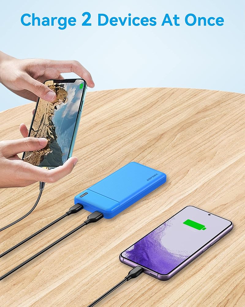 ✅[اشحن اثنين في وقت واحد] شاحن بطارية محمول AsperX مزود بمنفذ USB-C ومنفذ USB-A مدمج، يمكنه تشغيل جهازين في وقت واحد. يتيح لك التصميم ثنائي المنفذ مشاركة الطاقة المحمولة مع العائلة والأصدقاء.