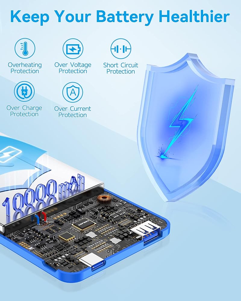 ✅【قوة الأيام】يمكن لشاحن الهاتف المحمول AsperX النحيف والقوي بقدرة 10000 مللي أمبير في الساعة أن يوفر iPhone 8 مع 3.6 شحن، وSamsung Galaxy S9 مع 2.2 شحن، وAirPods Pro مع 13.2 شحن، وiPad مع 1.2 شحن.