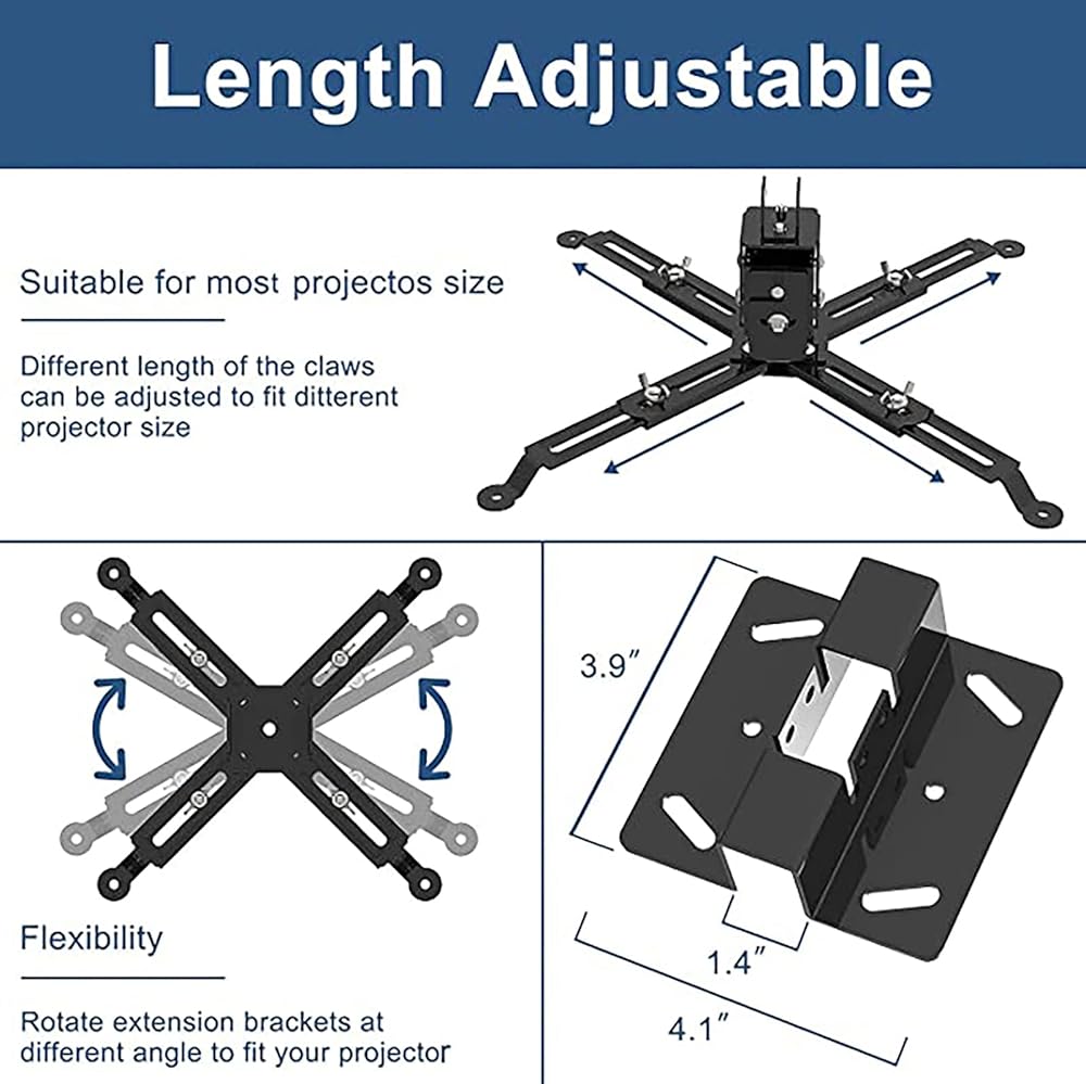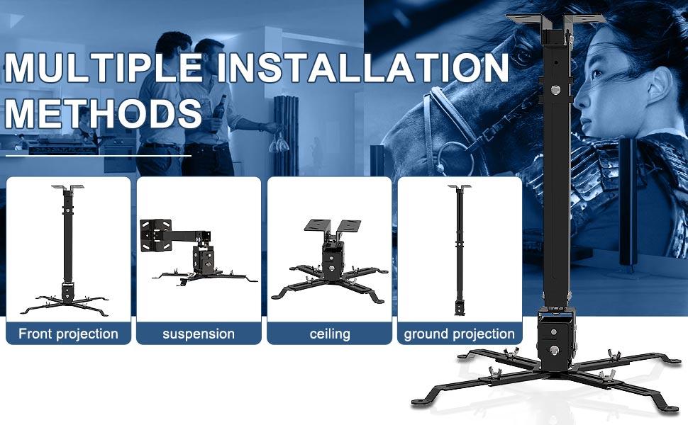 تركيب 4 في 1 بطول قابل للتعديل: حامل جهاز عرض جسيبا قابل للتعديل بطول من 4.72 انش إلى 25.6 انش، ويمكن تعديله إلى أي طول تريده، مناسب لمعظم أجهزة العرض في السوق. 4 طرق التركيب: 1. تركيب السقف المدمج؛ 2. تركيب سقف ذراع تلسكوبي؛ 3. تركيب على الحائط؛ 4. تركيب قضيب واحد.