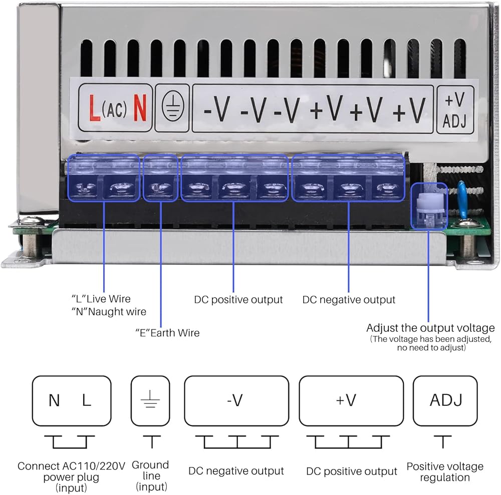 جهد الإدخال: AC110V220V الحد الأقصى للطاقة: 1000 واط جهد الخرج: تيار مستمر 12 فولت تيار الخرج: 0 - 83 امبير، الوزن الصافي: 1320 جرام 2.75 باوند الحجم: 250 × 120 × 70 ملم 9.84 × 5.12 × 2.76 انش، مادة الهيكل: هيكل معدني هيكل من الألومنيوم الامتثال للسلامة: سعر مرتفع فعال، موثوقية مع معايير الصناعة المدمج في أكثر من الجهد ، أكثر حماية من التيار والماس الكهربائي. درجة حرارة التشغيل: -10 درجة مئوية - +60 درجة مئوية، 20 في المائة - 90 في المائة رطوبة نسبية، درجة حرارة التخزين والرطوبة: -20 درجة مئوية - +85 درجة مئوية، 10 في المائة - 95 في المائة نطاق فرق الرطوبة النسبية: ±1 في المائة الكفاءة: >80 في المائة نطاق الجهد القابل للتعديل: ± 5 في المائة التردد: 50-60 هرتز، تيار التسرب: