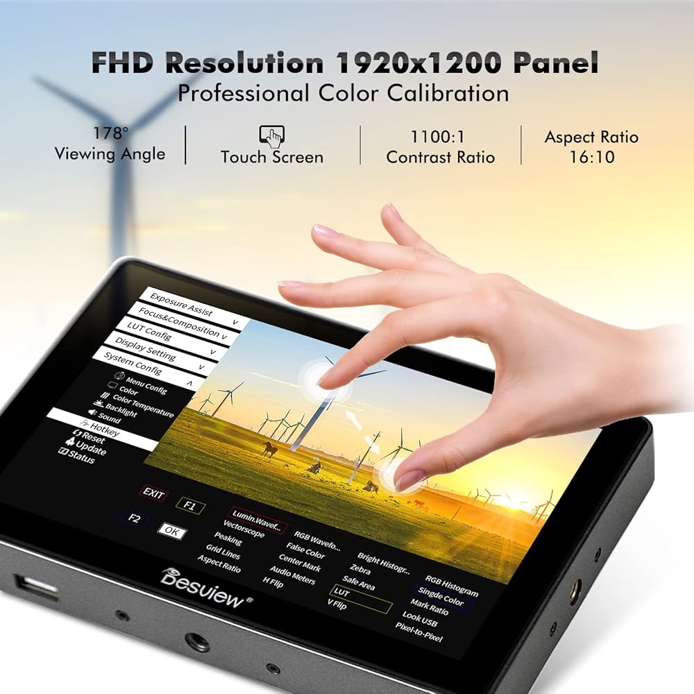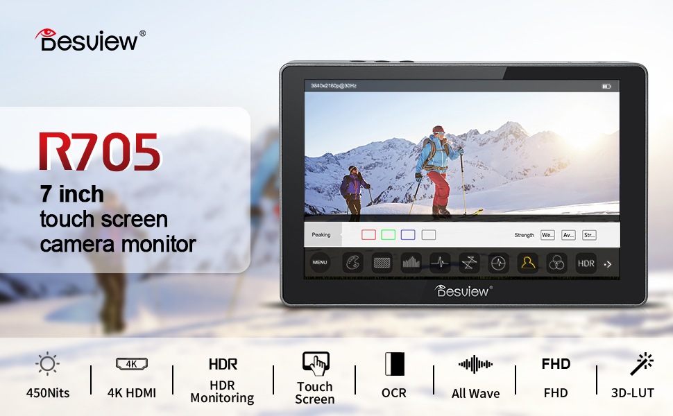 ديسفيو شاشة ميدانية للكاميرا R705 بشاشة لمس 7 انش FHD IPS بزاوية رؤية 178 درجة ومنفذ HDMI بدقة 4K ومنفذ HDMI ثلاثي الابعاد وموج موجي ثلاثي الابعاد ومدرج بياني بالوان زائفة وتركيز ذروة، شاشة كاميرا HDR
