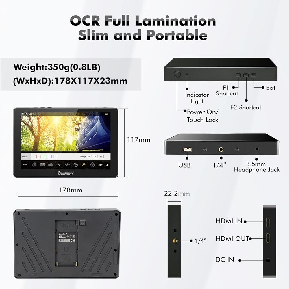 • 【نقل 4K HDMI بدون تأخير】مصمم بواجهات إدخال وإخراج HDMI، يدعم حتى 3840 × 2160 بكسل عند 30 هرتز، 4096 × 2160 بكسل عند 24 هرتز إشارات HDMI 4K، والتي ستزامن لقطات الكاميرا بوضوح مع شاشة أكبر، مما يسمح للمخرج والمصور بالمشاهدة من زوايا مختلفة. منفذ سماعة رأس عالمي 3.5 ملم مفيد للتحقق من جودة الصوت في الوقت الفعلي.