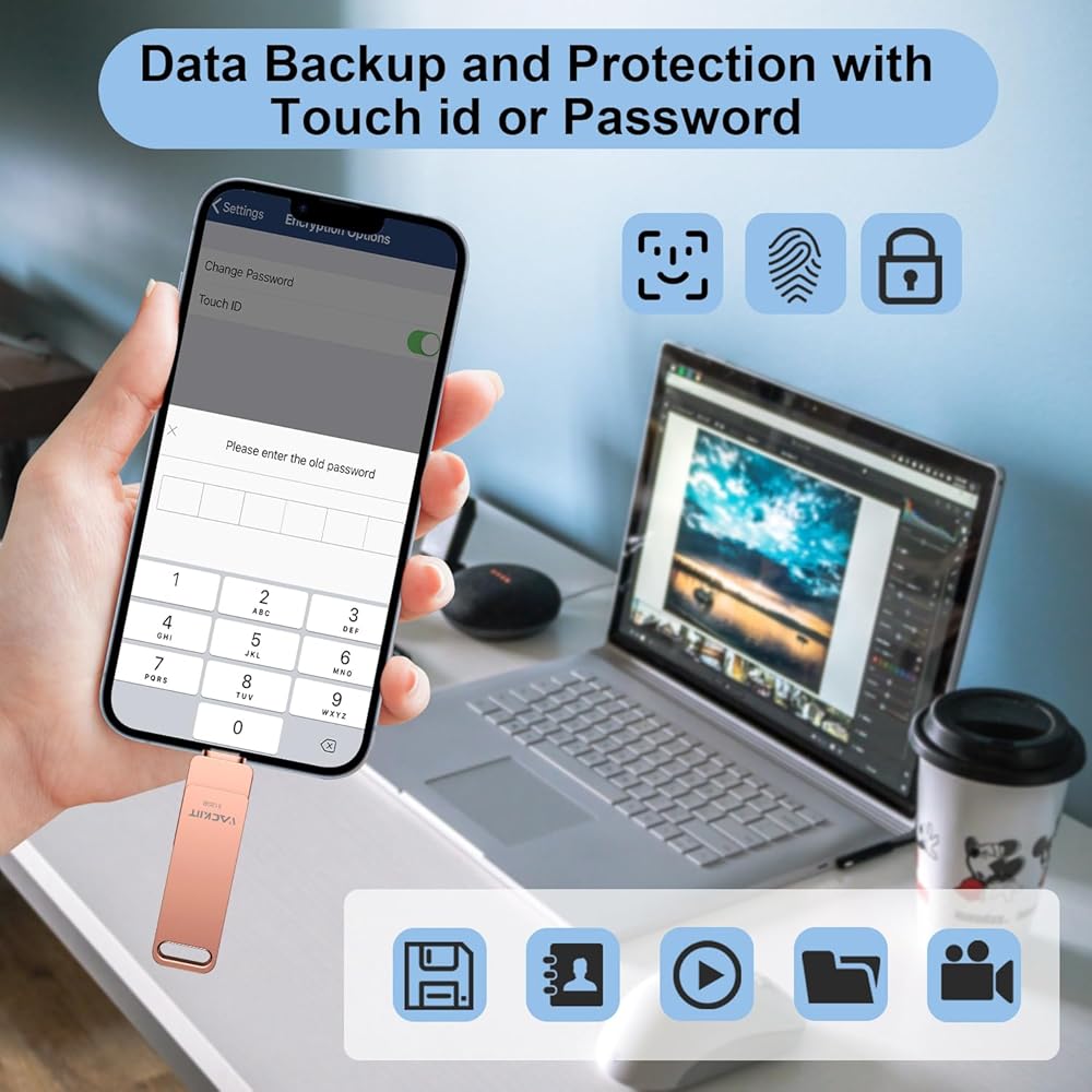 • 【حماية الخصوصية】عصا صور معتمدة من MFi سعة 512 جيجابايت لمشاركة البيانات بسهولة مع أي شخص، مما يجعل الترفيه والعمل أكثر ملاءمة. يوفر محرك الأقراص المحمول لجهاز iphone أيضًا كلمة مرور ومعرف اللمس لتشفير معلومات الملف في التطبيق لحماية ملفاتك الخاصة، ويمكنك اختيار تشفير محرك أقراص فلاش USB بالكامل أو ملف معين. جميع الملفات المشفرة المخزنة في محرك أقراص فلاش USB هذا غير مرئية على جهاز الكمبيوتر. (تحتاج إلى تذكر كلمة المرور، إذا نسيتها، فلا يمكن أن تكون محبوبة).