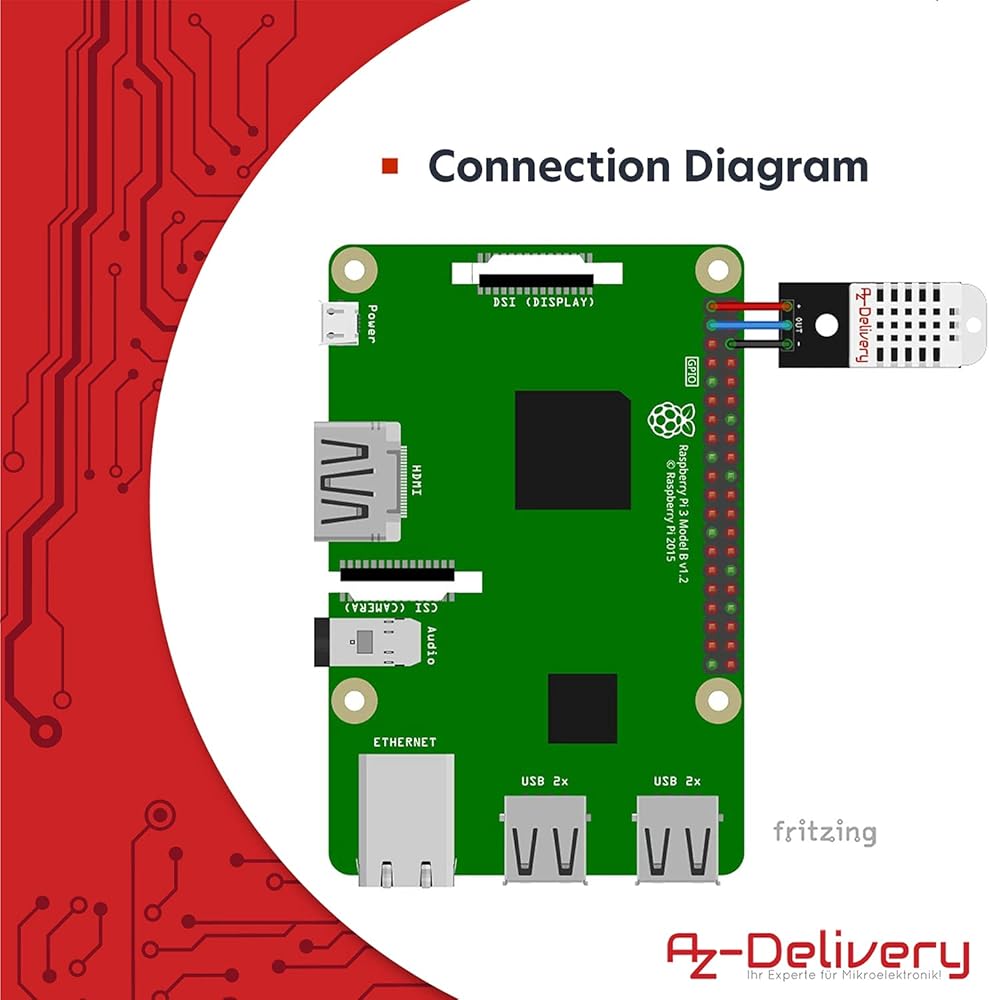 ✅ AZ-Delivery Compitable with DHT22 Temperature and humidity sensor Module supplied with the breakout board and the cable, is the right choice for you if you need precise and reliable measurements of temperature and humidity levels for your Raspberry Pi based projects.