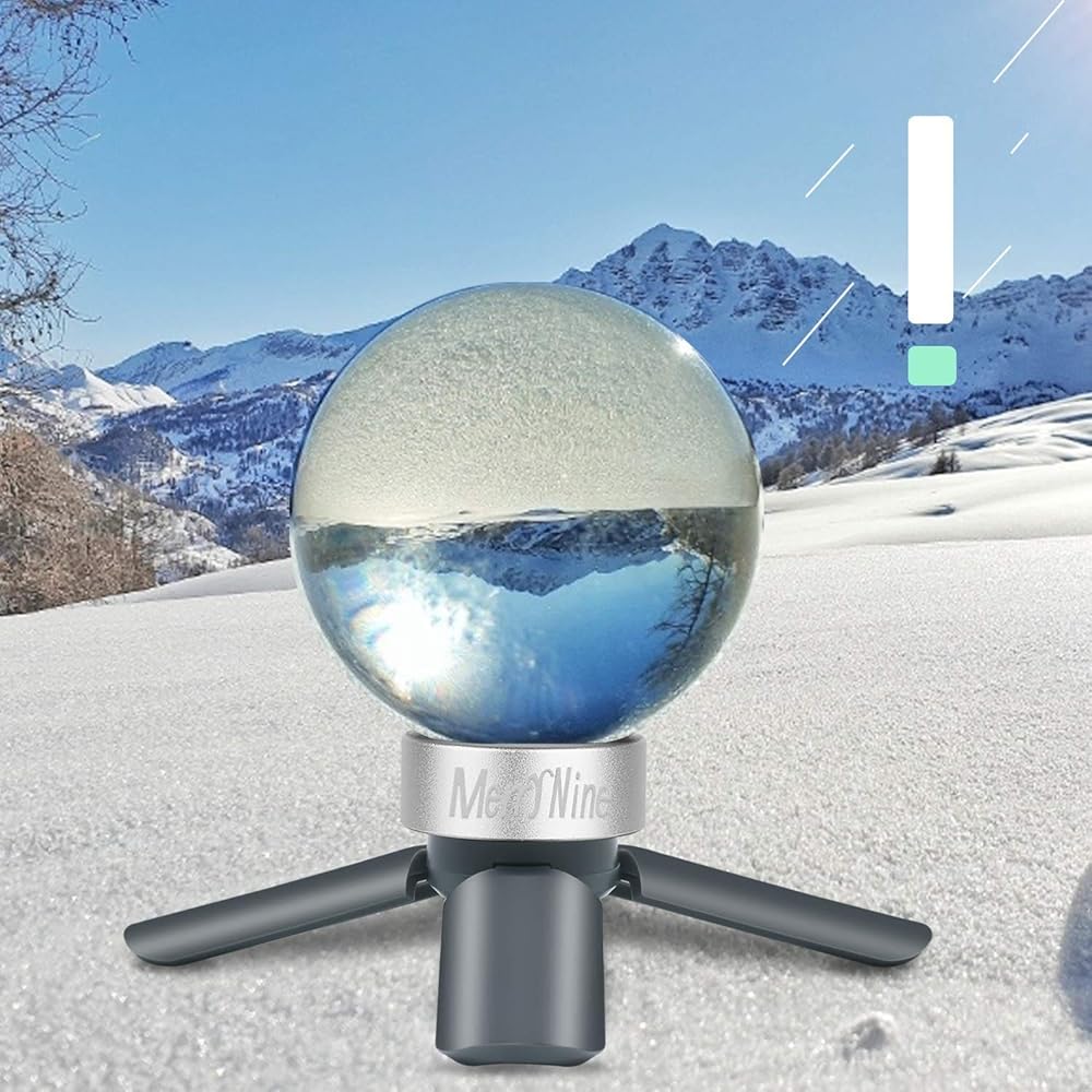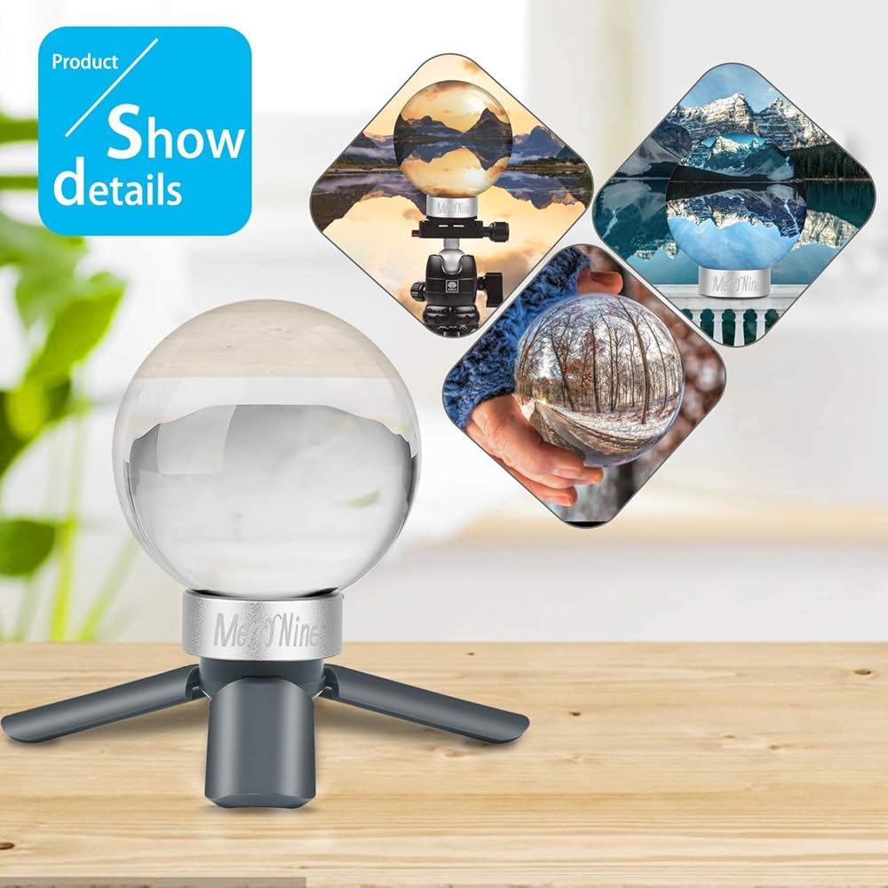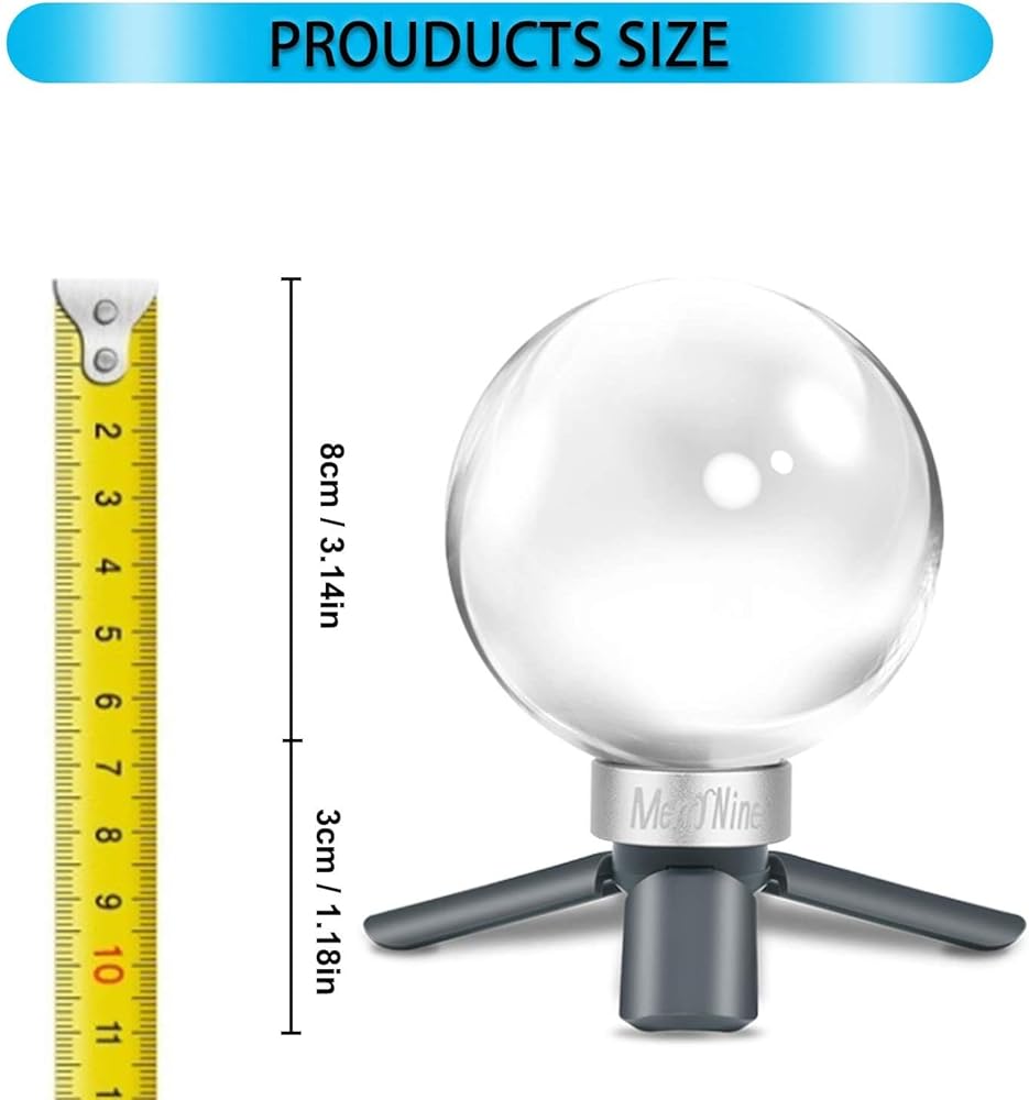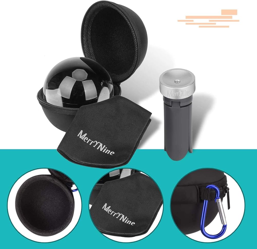 كرة تصوير كريستالية من MerryNine K9، كرة كريستال بعدسة K9 مع حامل ثلاثي صغير، واجهة كاميرا عالمية وقاعدة معدنية مستديرة وحقيبة، لتعليم الصور الفوتوغرافية والديكور الفني لفيزياء الطيف (80 مم)