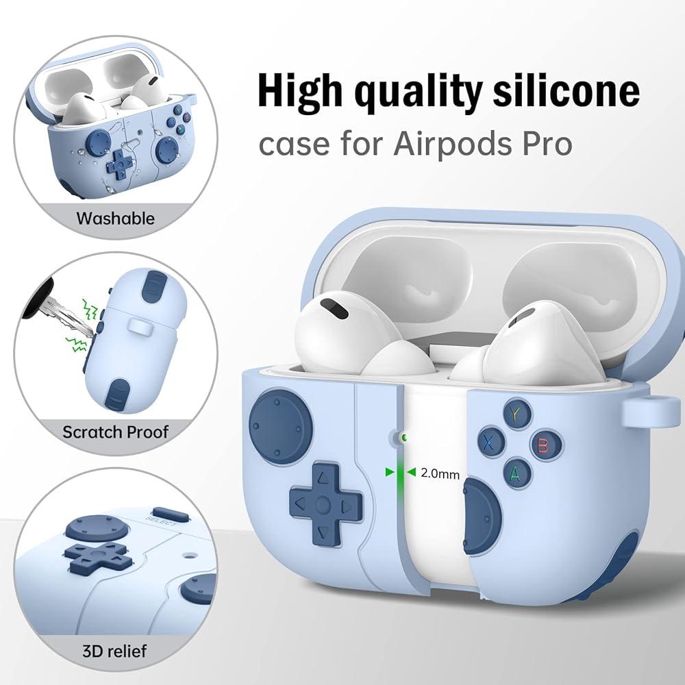 Compatible with AirPod Pro 2nd Generation Case Cover with Cleaner Kit, Classic Handheld Game Console Design Soft Skin Silicone Protective Compatible with Apple AirPod Pro 2 Charging Case-Far peak blue