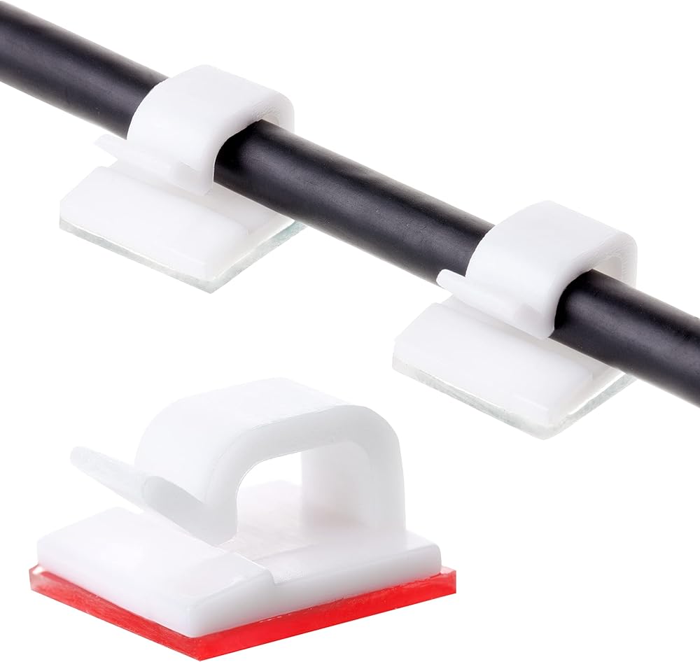 ما عليك سوى تقشير الجزء الخلفي ولصق مشابك الأسلاك على سطح مستوٍ وجاف دون أي براغي أو أدوات؛ ستنظم مشابك الكابلات الخاصة بنا الأسلاك الفوضوية بشكل أنيق.
