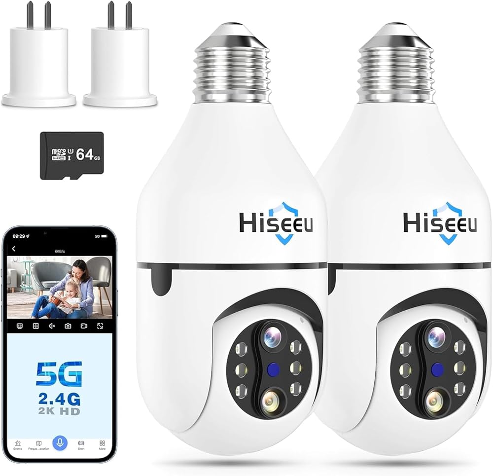 مشاركة متعددة المستخدمين وتوافق تخزين Alexa/Cloud: تدعم كاميرات اللمبة اللاسلكية العديد من المستخدمين لمشاهدة الفيديو في وقت واحد، مما يسمح لأصدقائك وعائلتك بمشاهدة اللقطات على هواتفهم في وقت واحد. كاميرا Hiseeu ذات المصباح الكهربائي متوافقة مع Alexa، وتدعم بطاقة SD (حتى 128 جيجابايت) والتخزين السحابي (ملاحظة: بطاقة SD غير متضمنة، والتخزين السحابي ليس مجانيًا).