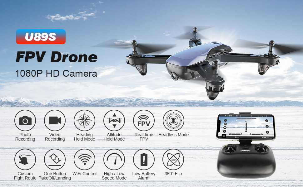 تشيروينج طائرة درون U89S بكاميرا 1080P للاطفال والكبار، طائرة درون رباعية المراوح لايف اف بي في للمبتدئين مع مفتاح واحد للاقلاع/الايقاف، تثبيت الارتفاع، تحكم صوتي، انقلاب ثلاثي الابعاد