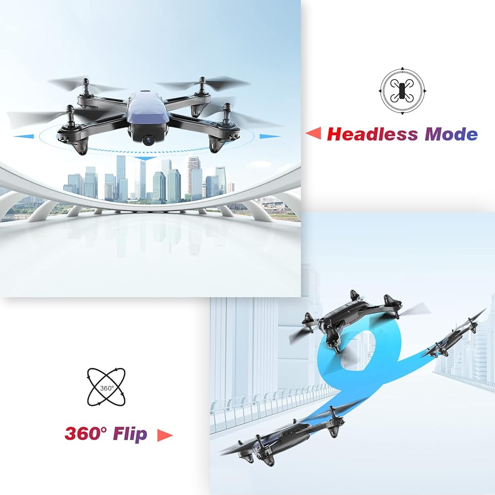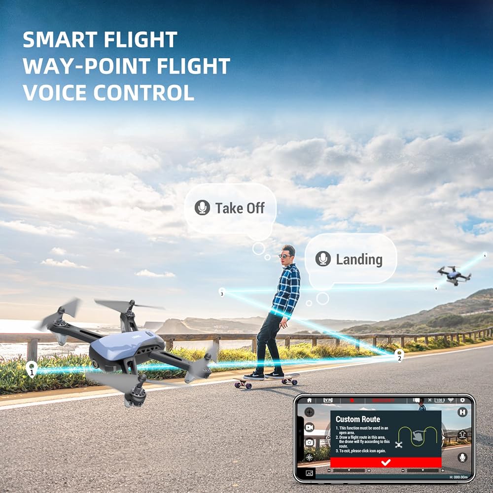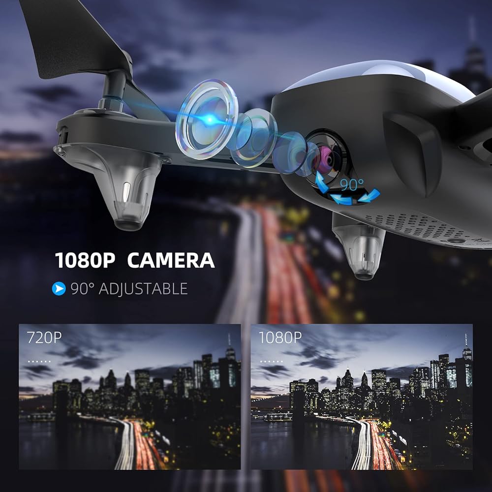 • طائرة بدون طيار بتقنية واي فاي FPV مع كاميرا عالية الدقة: مجهزة بكاميرا 1080P بزاوية قابلة للتعديل 90 درجة، استخدم واي فاي للاتصال بالطائرة بدون طيار في التطبيق لعرض الفيديو في الوقت الفعلي وزمن الاستجابة المنخفض الذي تلتقطه الطائرة بدون طيار. يسمح لك بالتقاط صور ومقاطع فيديو أوسع للمناظر الطبيعية أثناء الطيران.