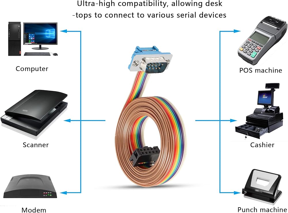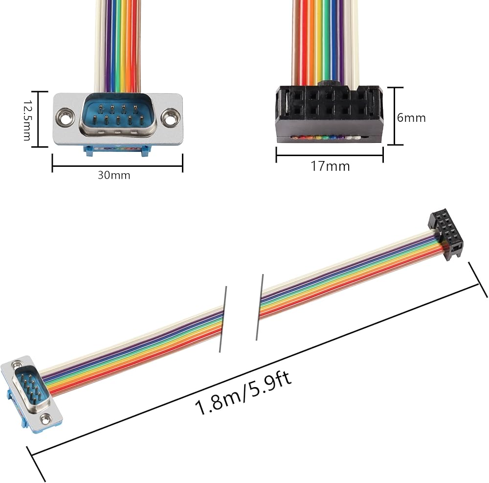 Fasten a DB9 (RS232) Serial port to any computer system which has an RS232 serial panel mount receptacle,Flat ribbon cable saves space and time in circuit interconnect assemblies