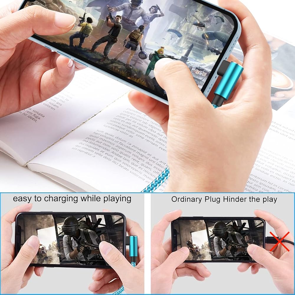 [تصميم زاوية 90 درجة لسهولة الوصول] يتميز بتصميم مبتكر للمرفق لمنع الكابل من الإضرار، أمسك هاتفك للألعاب والتصفح بشكل مريح عند الشحن. يرجى الانتباه إلى أن كابلات الإضاءة ذات الزاوية اليمنى هذه يمكن أن تعمل مع iPhone مع معظم Otter..box الغطاء الواقي، باستثناء عدد قليل