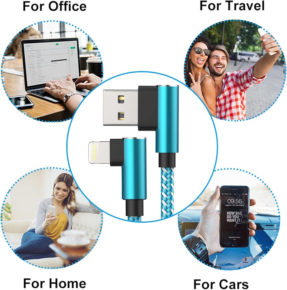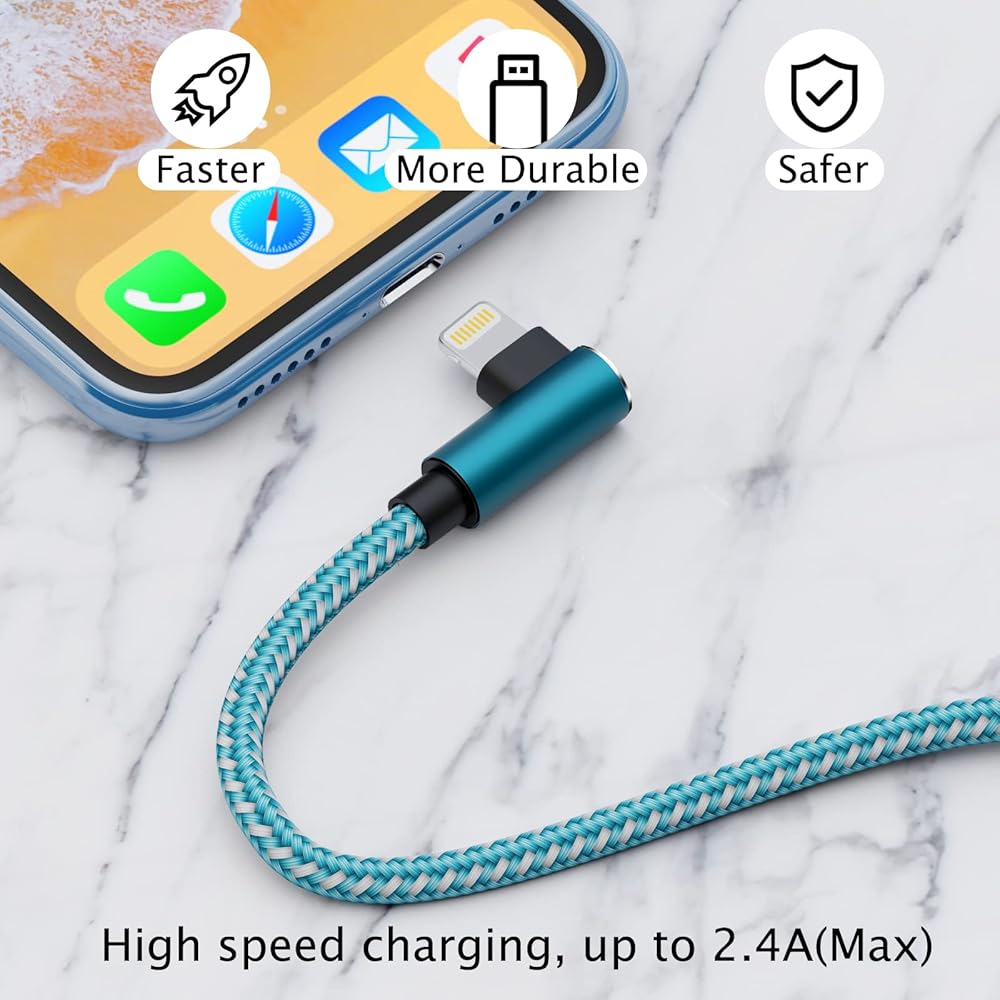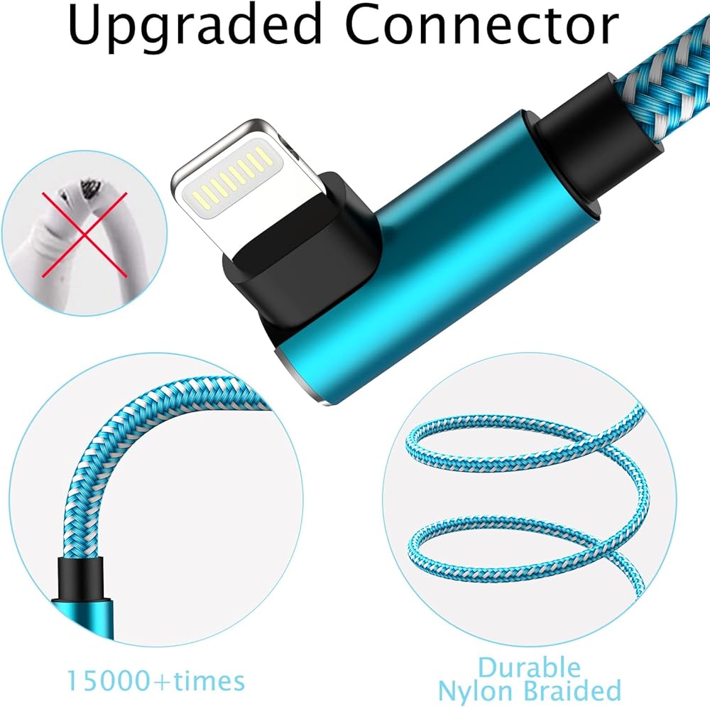 [تتضمن عبوة واحدة]: 3 عبوات من أسلاك شحن كابل لايتنينج 10FT 90 درجة لهاتف iPhone.