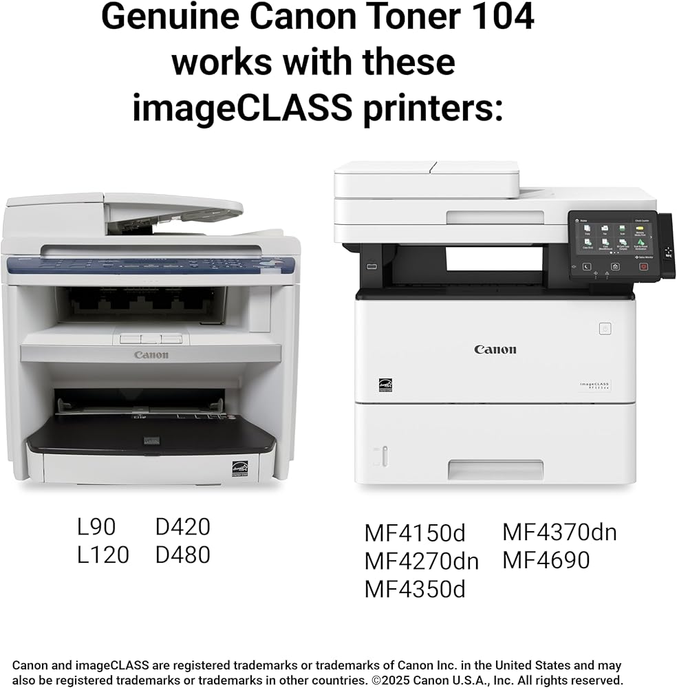 خرطوشة حبر أصلية من كانون، خرطوشة 104 سوداء (0263B001)، عبوة واحدة، لطابعة Canon imageCLASS D420، D480، MF4150d، MF4270dn، MF4350d، MF4370dn، MF4690 وفاكسفون L120، L90