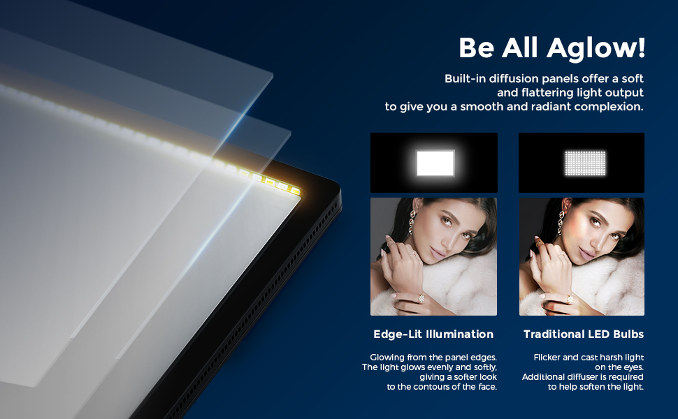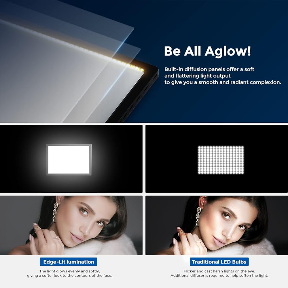 【Ultra Thin Panel & 1/4” Cold Shoe Mount】 The ultra thin LED light panel is lightweight and easy to carry around. 180° angle adjustment makes your shooting more flexible. A large LCD screen on the back of the light will clearly show the color temperature, brightness, and battery status of the light. The included universal cold shoe mount with 1/4" thread that allows the light panel to be mounted on DSLR cameras, camcorders, tripods and light stands