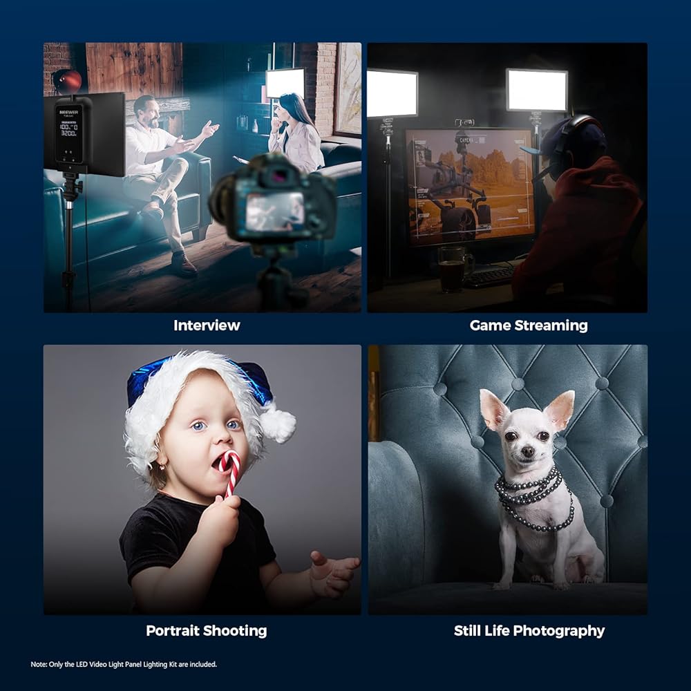 【Dimmable Brightness & 2 Color Temperature】 NEEWER T140 2.4G LED video light is composed of 192 long lasting LED beads (96 warm yellow + 96 cool white), 2 separate knobs on the panel back for adjusting the warm/cold color temperature (3200K~5600K) and brightness from 0 to 100%. CRI 97+ can truly restore the color of the subjects. This soft light is perfect for portrait photography, YouTube videos, live streaming, interviews, Zoom calls, and more