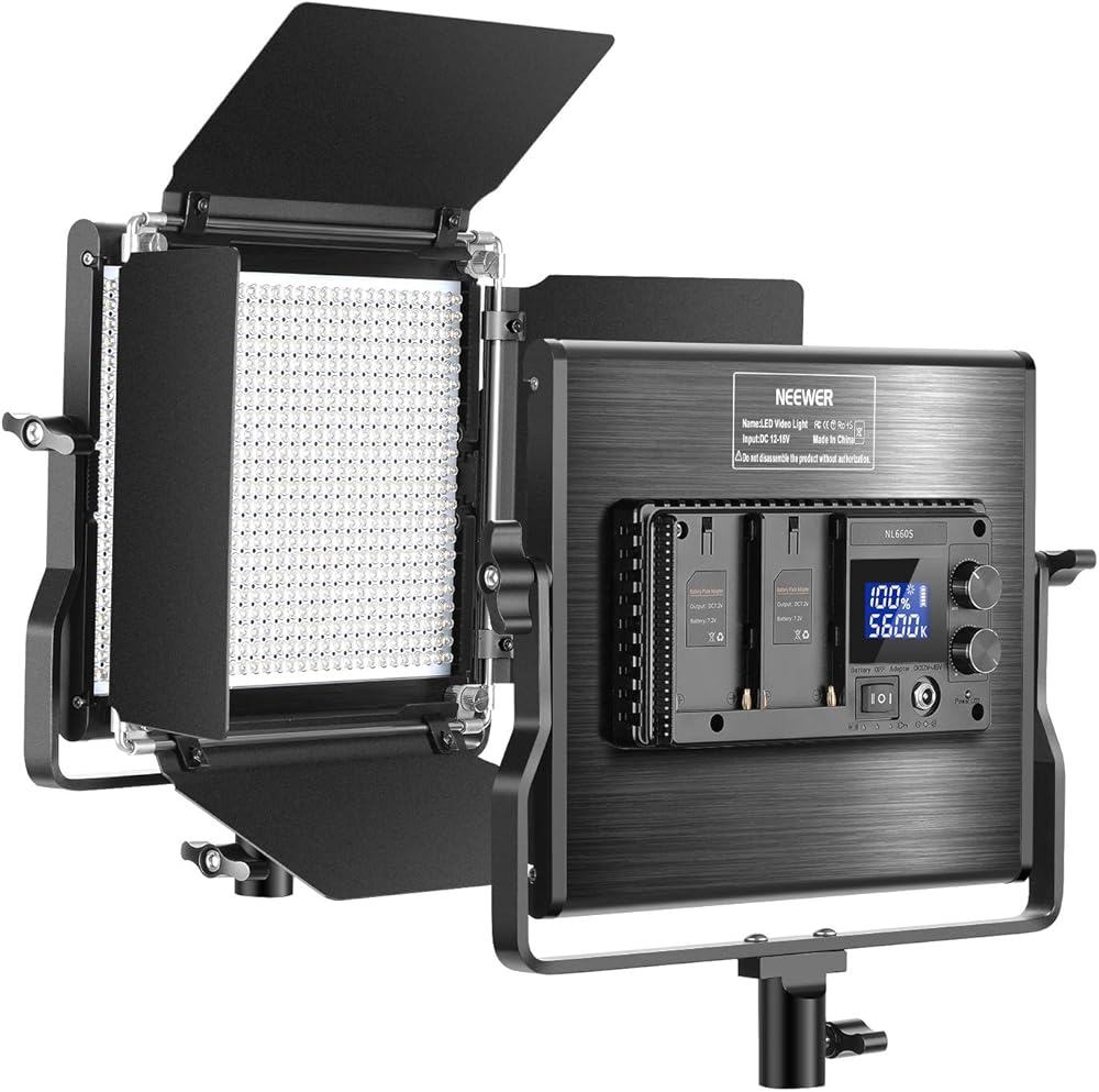 1 × مصباح فيديو LED NL660S مع دعامة تثبيت على شكل حرف U وأبواب حظيرة