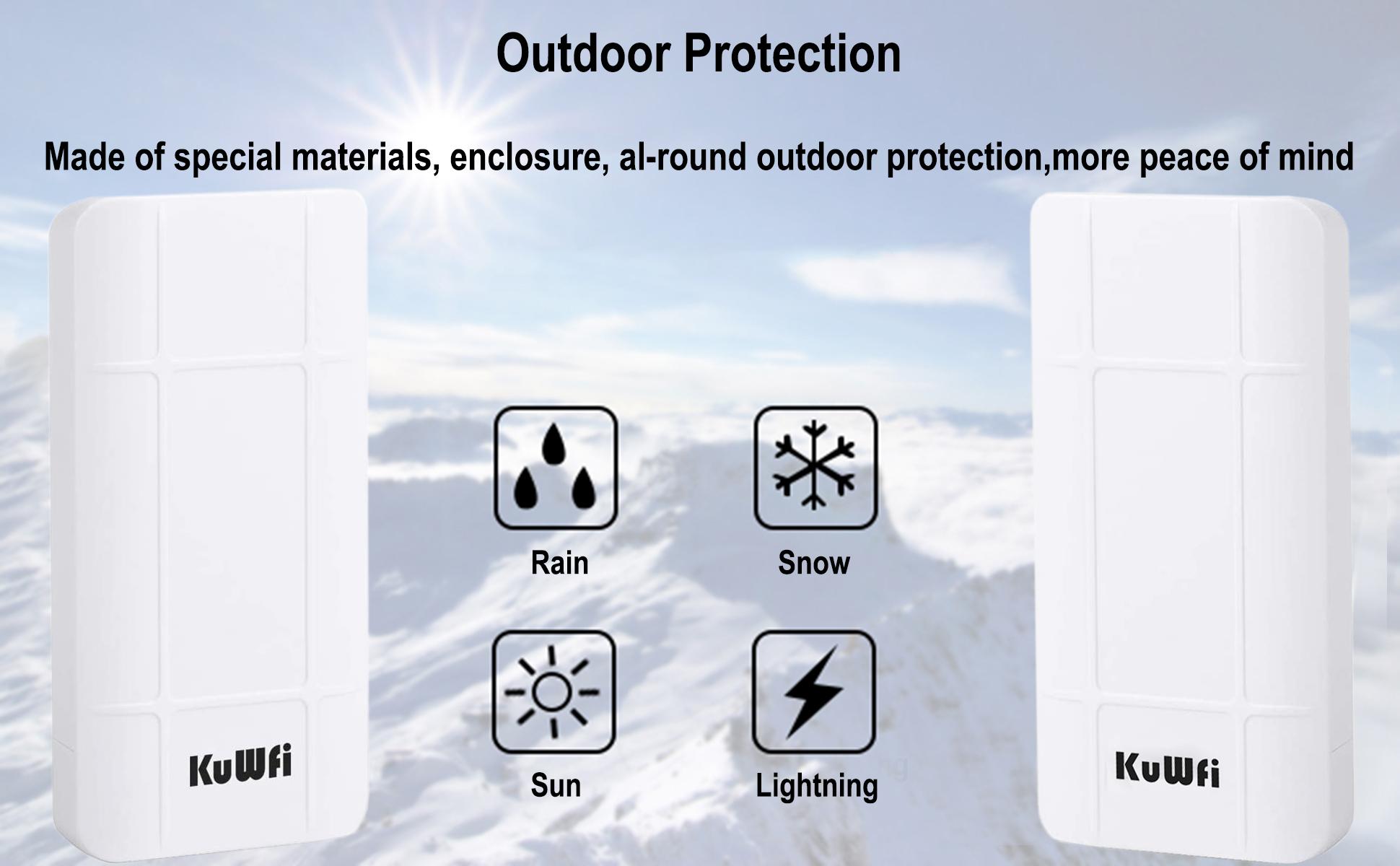 مصمم لتغطية شبكة Wi-Fi الخارجية: غطاء مقاوم للعوامل الجوية بدرجة IP66 يضمن استمرار التشغيل في البيئات الخارجية القاسية أو في المناخات شديدة البرودة أو الحرارة أو الرطوبة المستمرة. حماية من البرق، مقاوم للماء، مقاوم للغبار، مضاد للتجمد، مقاوم لدرجات الحرارة العالية، مع مخرج PoE المدعم بالبرمجيات، يمكن لمنفذ Ethernet الثانوي تشغيل جهاز خارجي، مثل كاميرا أمان PoE، لتكامل فيديو IP سلس