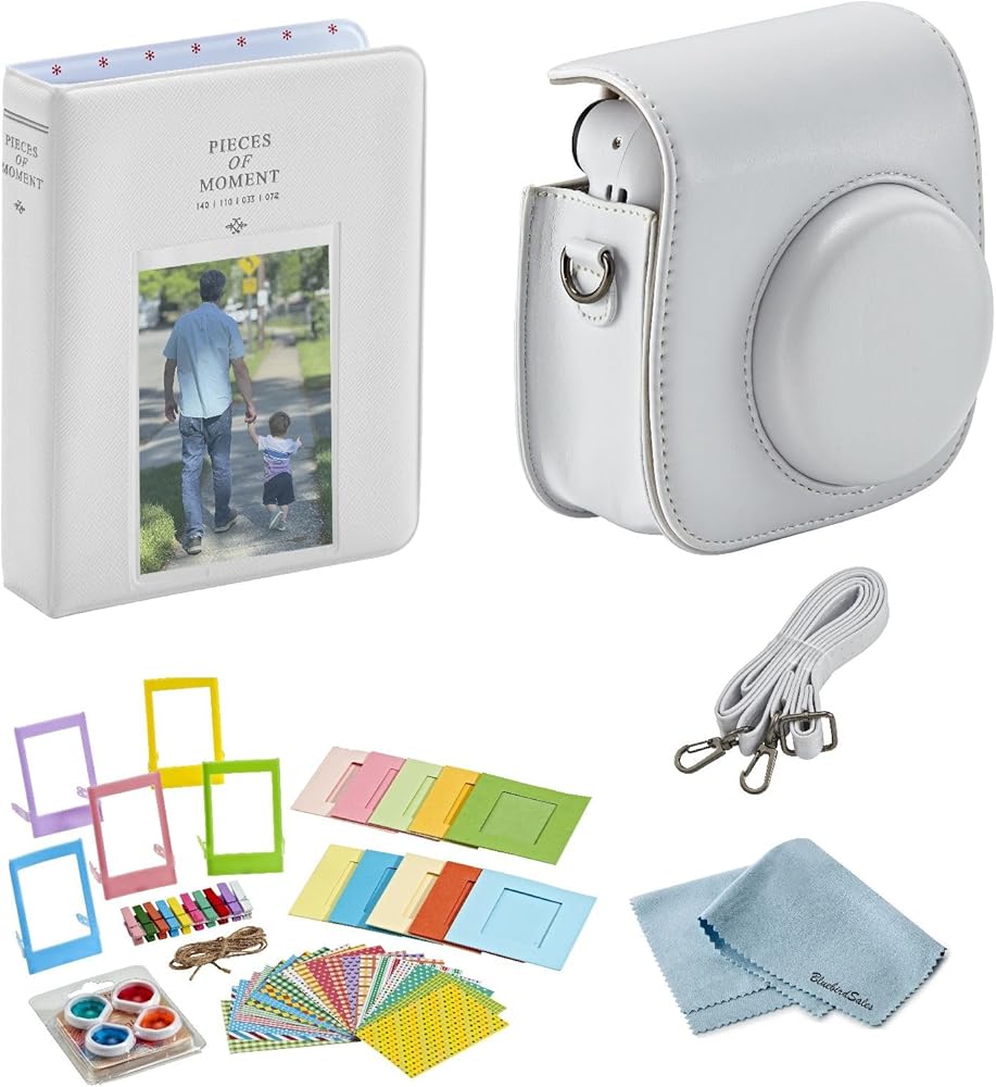 BluebirdSales FujiFilm Accessories Pack, Includes Photo Album, Camera Case, Camera Strap & Cleaning Cloth - Clay White