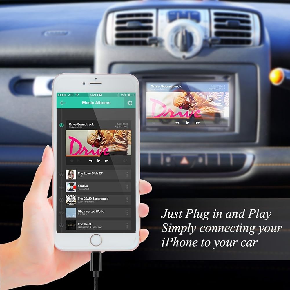 【High Quality Materials】: The iPhone aux cord has a length of 3ft/1 Meter that allows for ease of connectivity between your iPhone and devices with 3.5mm aux female ports directly. Adopted highest standard of quality Nylon Braided iPhone Aux cable, and the compact heat resistant aluminum alloy ends, that make the iPhone aux adapter to be more strong but flexible and easily survive everyday heavy usage