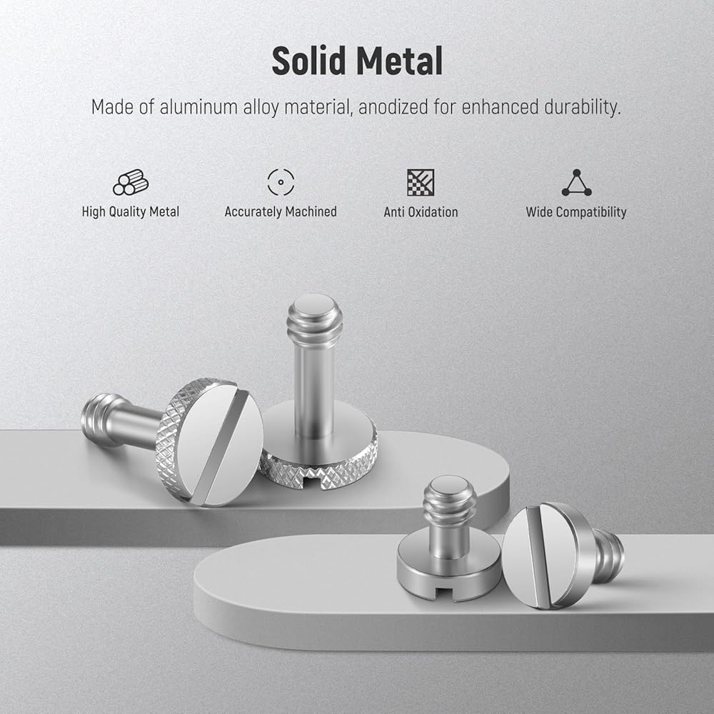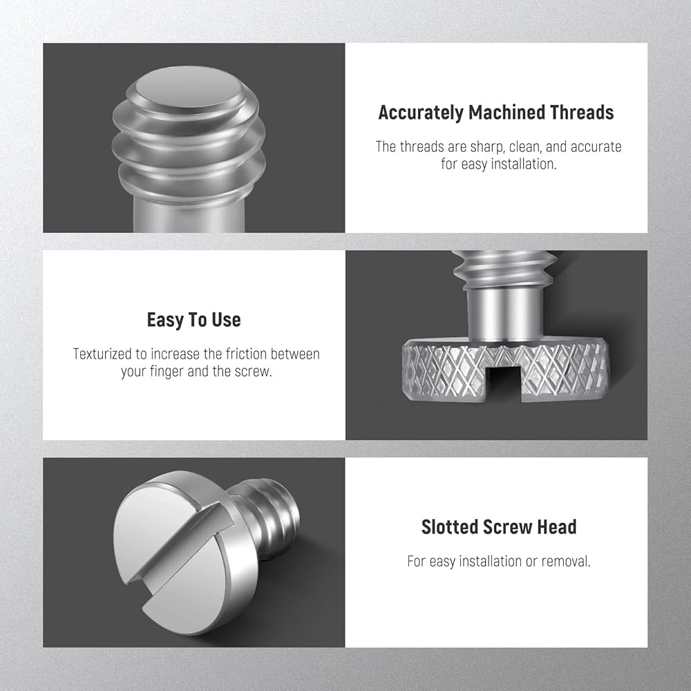 【Wider Compatibility】 The 1/4'' slotted screws are compatible with camera mounting plates, quick release plates, tripods, monopods, and camera and telescope mounts with 1/4'' threaded holes