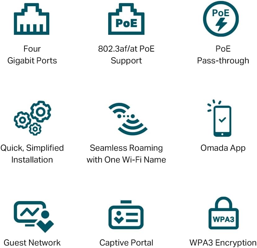 【سرعات Wi-Fi حقيقية فائقة السرعة 6 سرعات】مصمم بأحدث تقنيات Wi-Fi 6 اللاسلكية التي تتميز بـ 1024-QAM وHE60 ورمز OFDM الطويل، يعزز EAP655-Wall سرعات Wi-Fi مزدوجة النطاق تصل إلى 2976 ميجابت في الثانية.