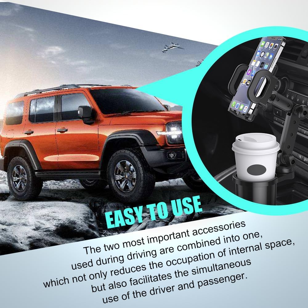 [2 in 1 design]: This Car Cup Holder Phone Seat is a 2 in 1 design, can place the mobile phone and water cup at the same time, compared with the kind of can only put the water cup or mobile phone bracket is more convenient, fully save the car space.