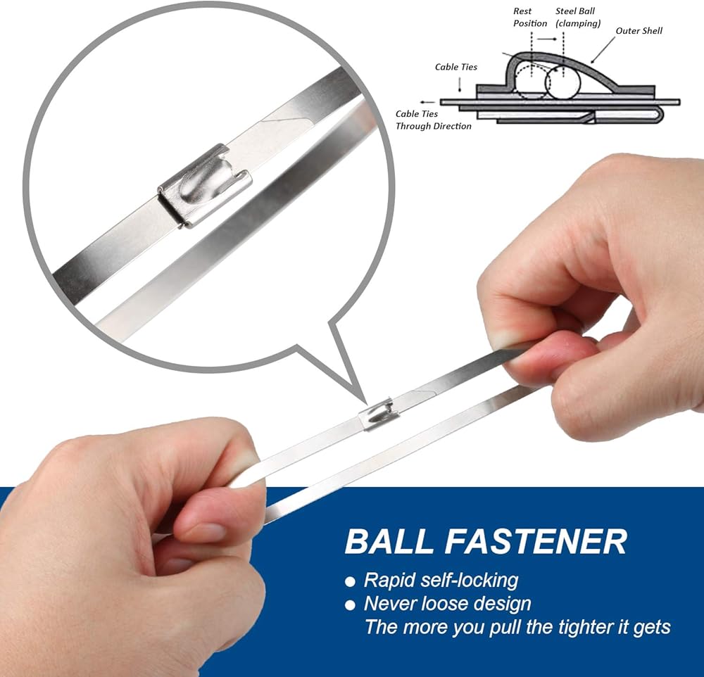 تتميز أربطة السحاب شديدة التحمل هذه بقفل ذاتي وآلية محمل كروي، والتي تضمن قوة شد 200 باوند كحد أدنى وسهولة الإدخال عند تأمين الخراطيم والكابلات والأنابيب وأكثر من ذلك