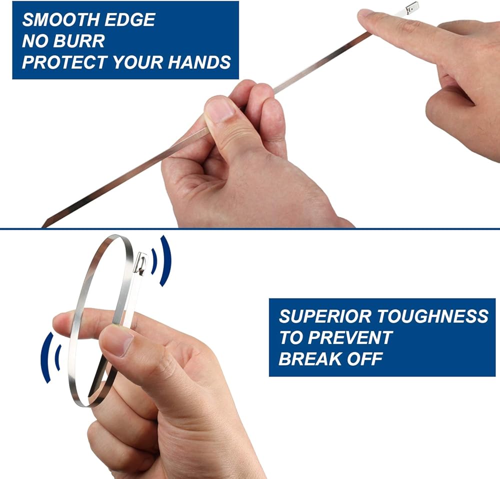 توفر أربطة السحاب المعدنية المقاومة للحريق بدرجة 304 حماية أفضل لمقتنياتك مقارنة بالربطات البلاستيكية العادية، مما يوفر الحماية عند استخدامها في البيئات المسببة للتآكل ودرجات الحرارة القصوى
