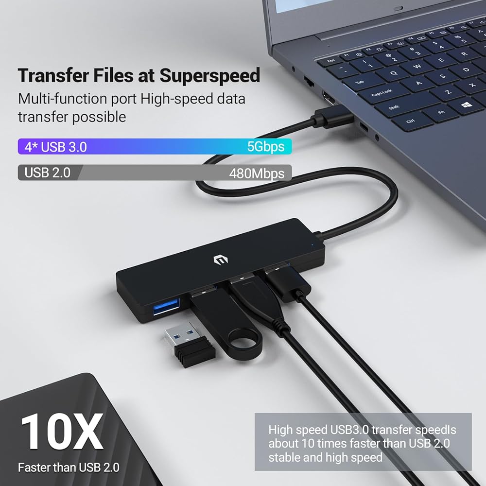 【 موزع USB 3.0】 يعمل محول موزع USB 3.0 ذو 4 منافذ من تايماي على توسيع اللاب توب الخاص بك مع 4 منافذ USB 3.0 إضافية. متوافق مع أجهزة اللاب توب وأجهزة الكمبيوتر والكيبورد والماوس وقارئ البطاقات والأقراص الصلبة والطابعات وكاميرات الويب ومراوح USB وكابلات USB