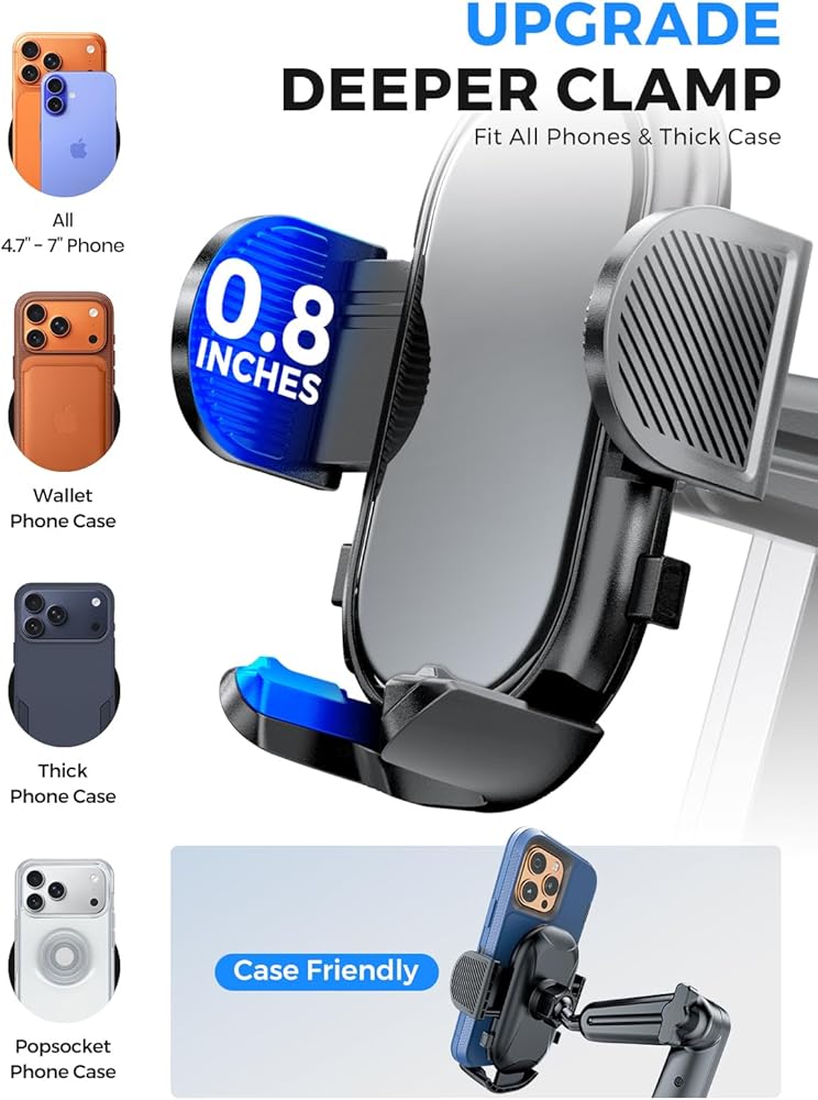 مشبك حامل قوي: الأذرع الجانبية الممتدة والمنحنية تجعل حامل هاتف السيارة ايسامكور مناسبًا للهاتف الذكي ذي الشاشة الكبيرة أو الحافظة الواقية أو حامل حلقة الهاتف. تم تجهيز هذين الذراعين الجانبيين بوسائد مطاطية ناعمة، والتي ستحمي هاتفك المحمول من السقوط والخدش.