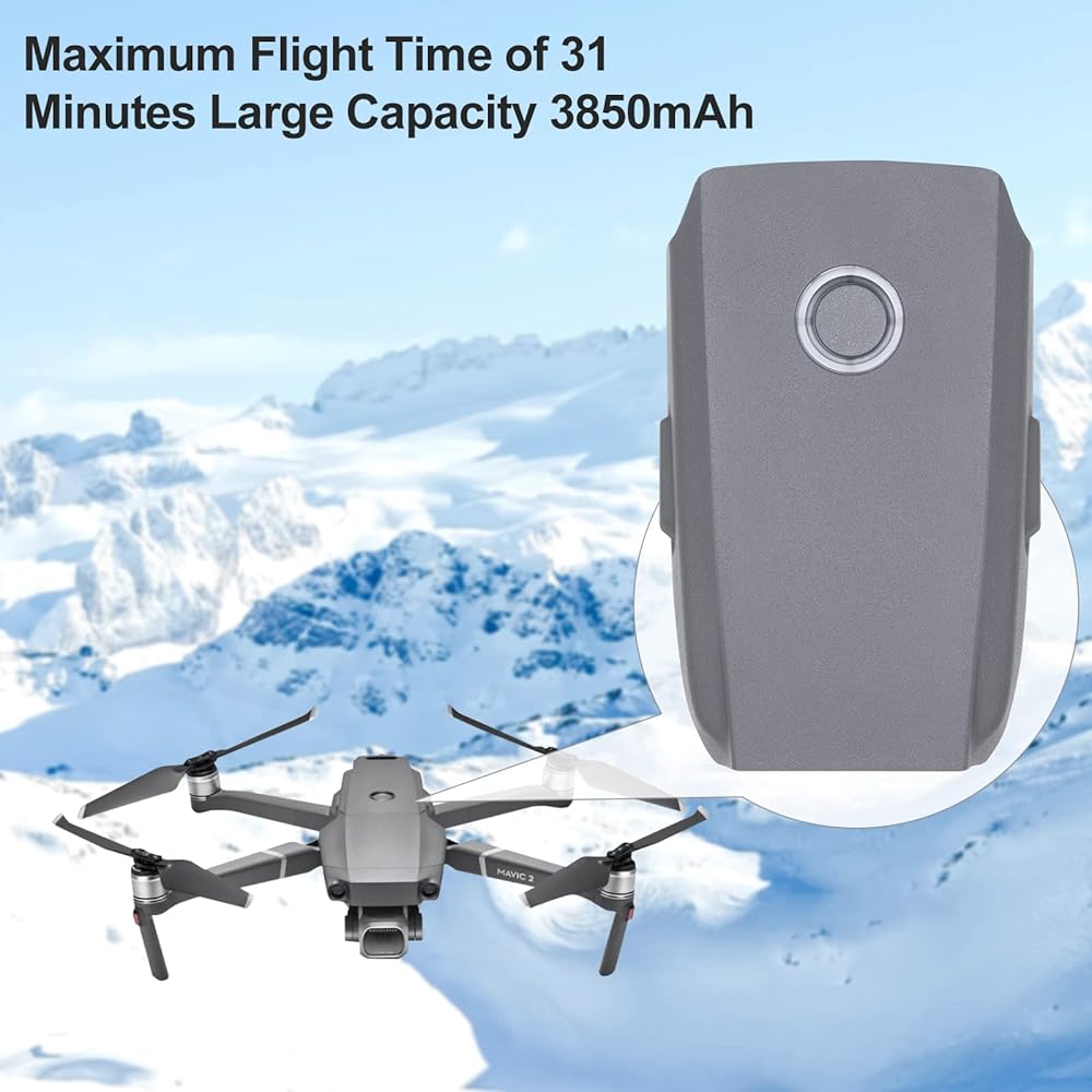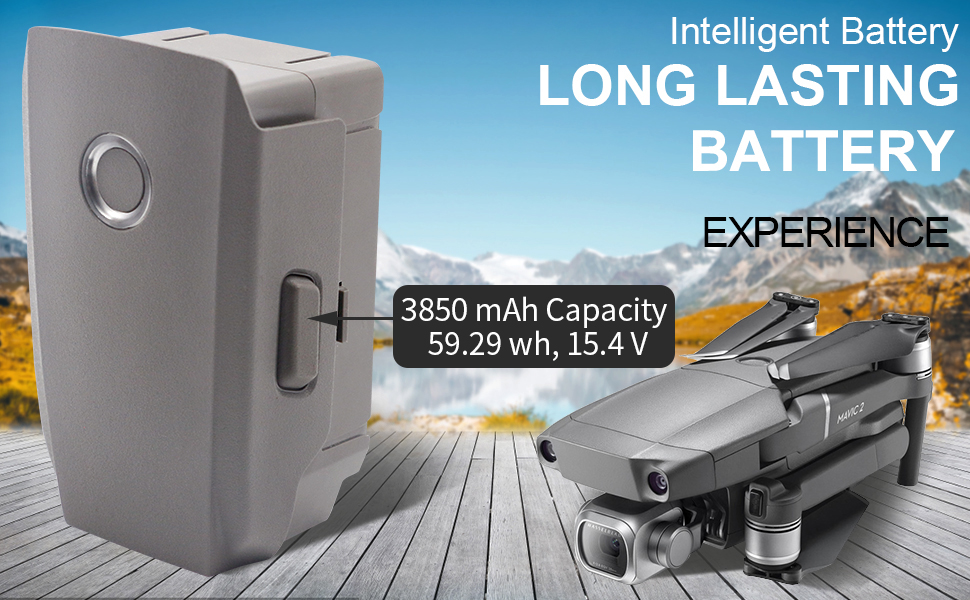 • 【التوافق: تتمتع بطارية الطيران الذكية لجهاز Mavic 2 بسعة تصل إلى 3850 مللي أمبير في الساعة، وتوفر أقصى وقت طيران يبلغ 31 دقيقة.