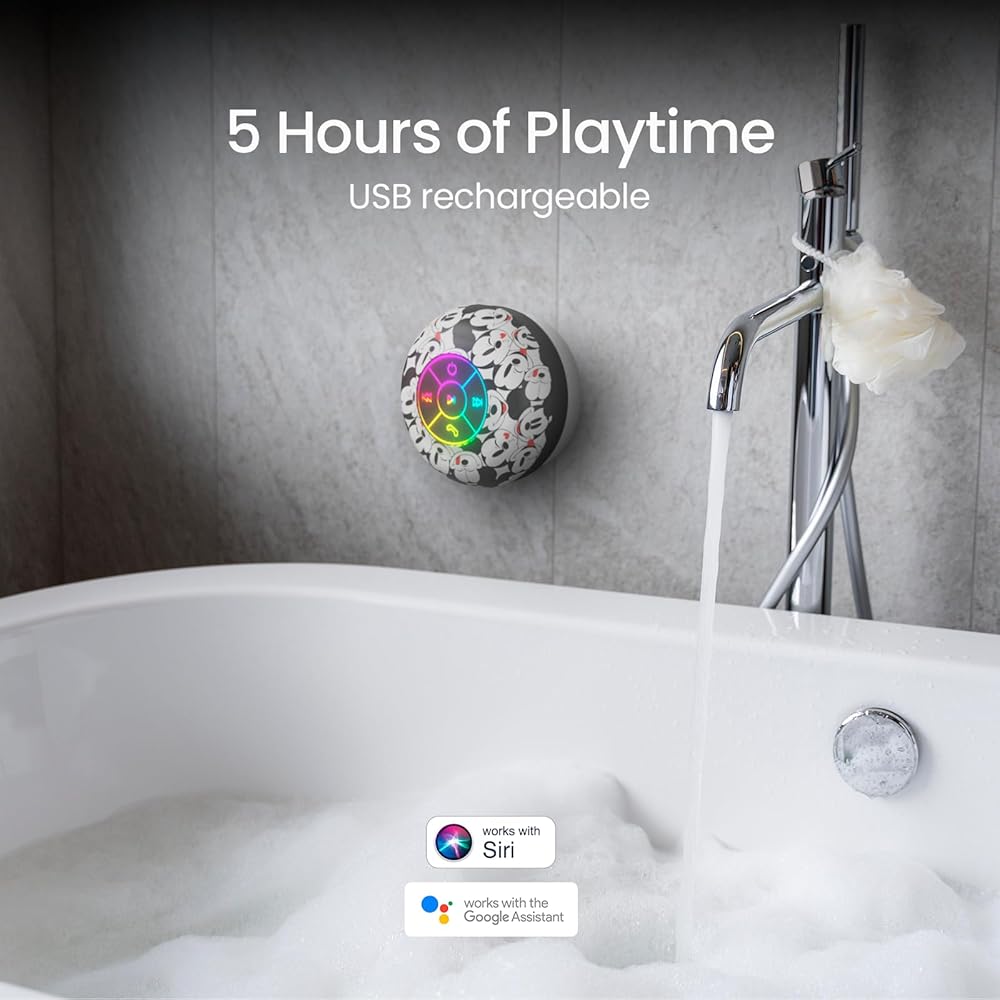 وقت تشغيل ممتد: استمتع بما يصل إلى 5 ساعات من تشغيل الموسيقى المستمر، مما يجعل استحمامك أكثر متعة وتسلية.