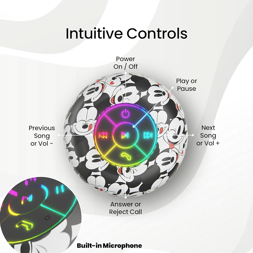 مكبر صوت بلوتوث iJoy Disney Mickey Mouse and Friends LED - مكبر صوت مقاوم لرذاذ الماء مع عناصر تحكم باللمس + وقت تشغيل 5 ساعات - هدايا ميكي ماوس للنساء والرجال والأطفال والمراهقين والمزيد (وجوه ميكي)
