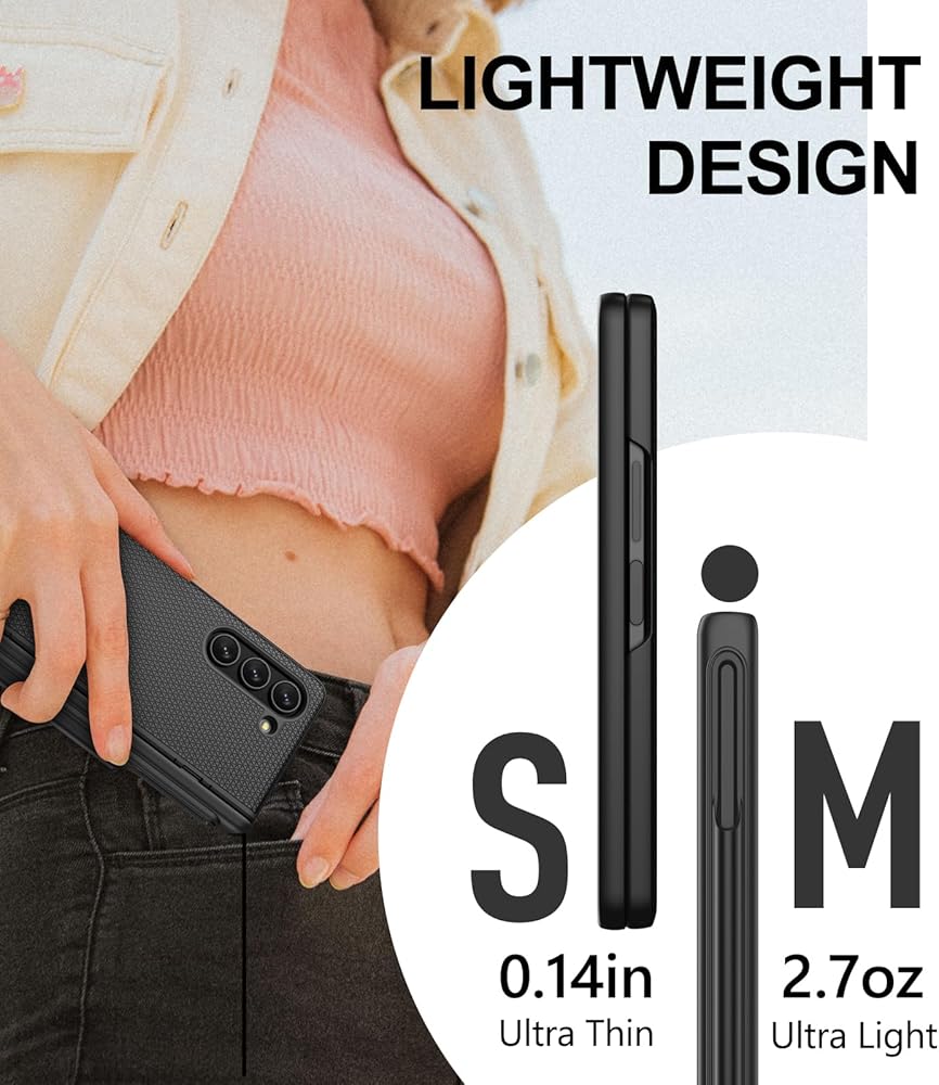 ✅【تصميم خفيف الوزن ونحيف للغاية】: مصنوع من مادة البولي كربونات الممتازة التي يمكن أن توفر حماية يومية من السقوط. تصميم بسيط ولكن خامة خفيفة الوزن، مما يجعله يبدو نحيفًا مثل هاتف Galaxy Z Fold 5 الأصلي، ويتناسب تمامًا. اصطحب حافظة الهاتف Z Fold 5 معك أثناء التنقل لتبسيط كل شيء. مناسب للجيب بالمعنى الحقيقي، ثم قل لا لحافظات الهاتف الثقيلة. يمنع التصميم الثلاثي الخاص المضاد للانزلاق حافظة Galaxy Fold 5 النحيفة من الانزلاق من يدك.