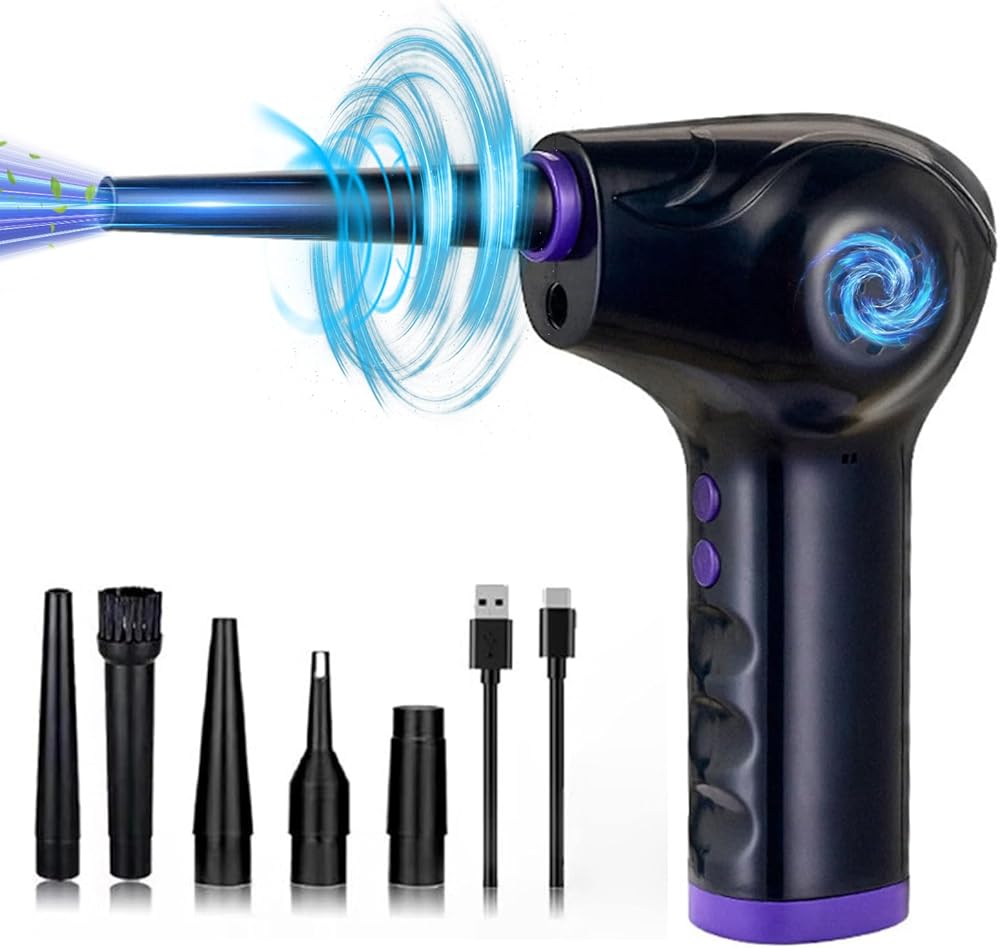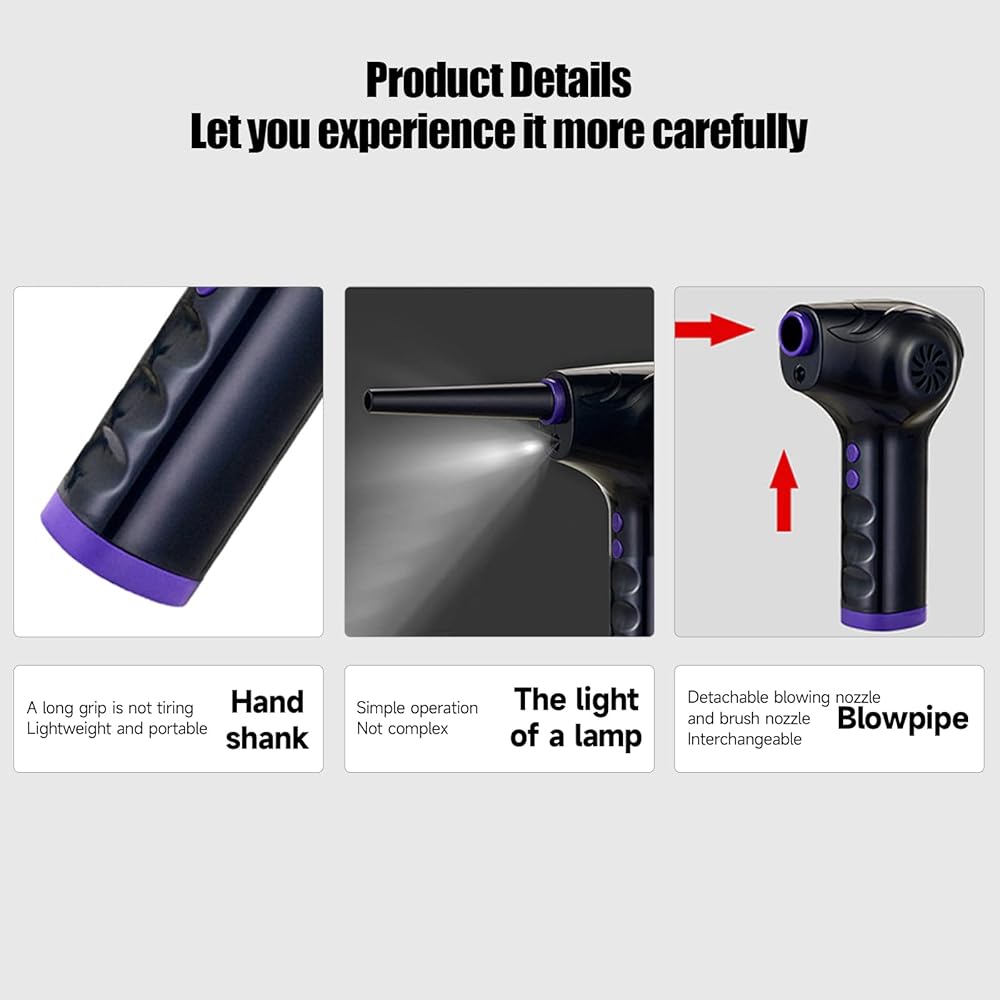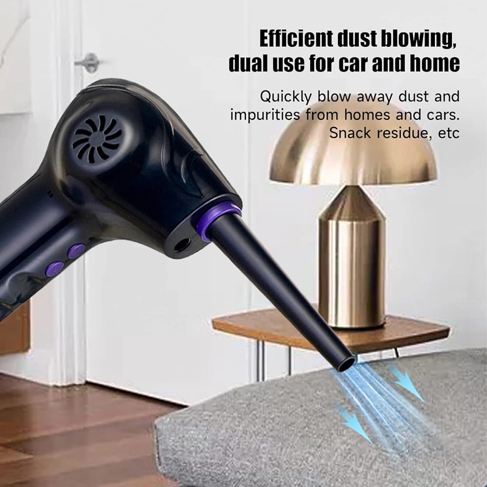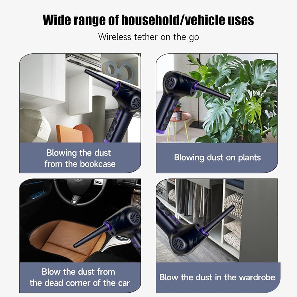 ▲[Multiple Uses]: The blower is equipped with 5 sets of nozzles to meet different needs. It is suitable for dust removal of computer casings, keyboards, cars, fans, lily windows, etc. The air dust collector can even be used for products that need to be inflated, such as swimming rings, yoga balls, steam boats, air cushions, inflatable toys, air beds, lifeboats, etc. You can easily put the Electric Air Duster Spray in a backpack or toolbox and take it with you wherever the job takes you.