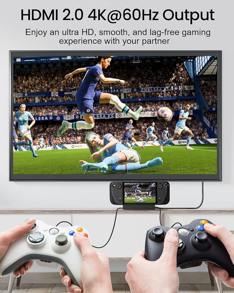 مخرج HDMI بدقة 4K عند 60 هرتز: تم تجهيز قاعدة ستيم ديك بمخرج HDMI 2.0 4K عند 60 هرتز، مما يجعله مزودًا بشريحة مدمجة متطورة، قم بالتوصيل والتشغيل، مريح في الاستخدام. يمكنه عرض جهاز ستيم ديك في الشاشة الكبيرة، مما يمنحك تجربة مشاهدة أكثر وضوحًا وسلاسة. تتيح لك الاستمتاع بالمرح البصري الذي يأتي مع التواجد في اللعبة.