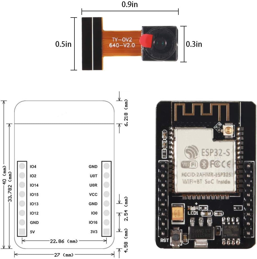 • تعتمد وحدة الكاميرا ESP32-CAM على شريحة ESP32 مع كاميرا OV2640 بدقة 2 ميجابكسل، وفلاش مدمج، كما تدعم كاميرات OV7670. تصميم صغير وصغير الحجم، يمكن وضعه على لوح توصيل بدون لحام، مما يوفر مساحة لمشروعك.