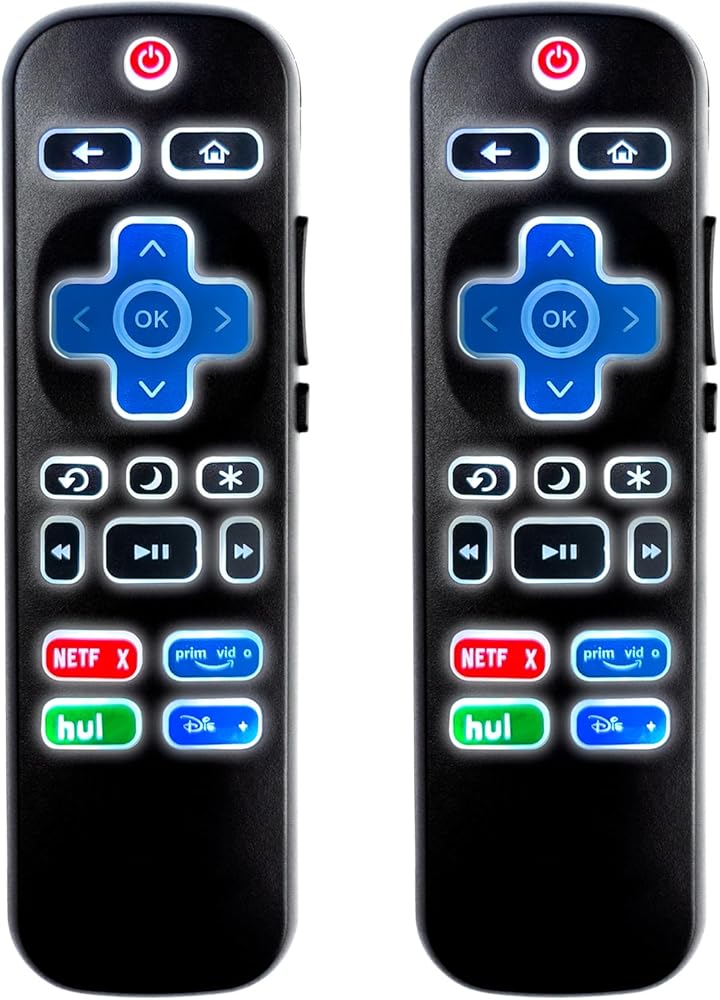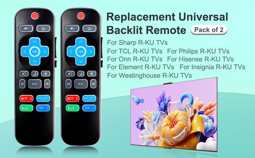 حزمة من 2 جهاز تحكم عن بعد بإضاءة خلفية عالمية لجهاز التحكم عن بعد R-KU-TV، متوافق مع تلفزيون TCL/Hisense/Sharp/Philips/Onn/Element/Insignia/Westinghouse R-KU TV (ليس لـ R-KU Stick/Box)