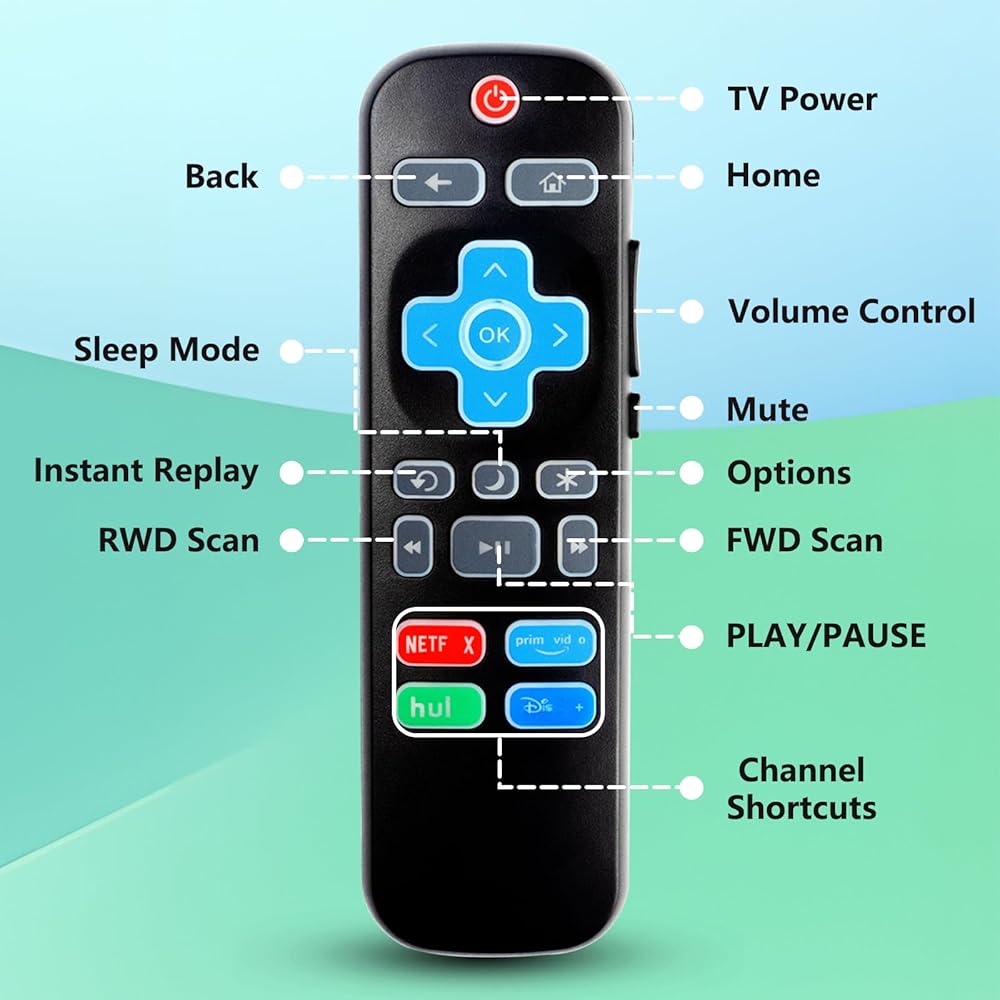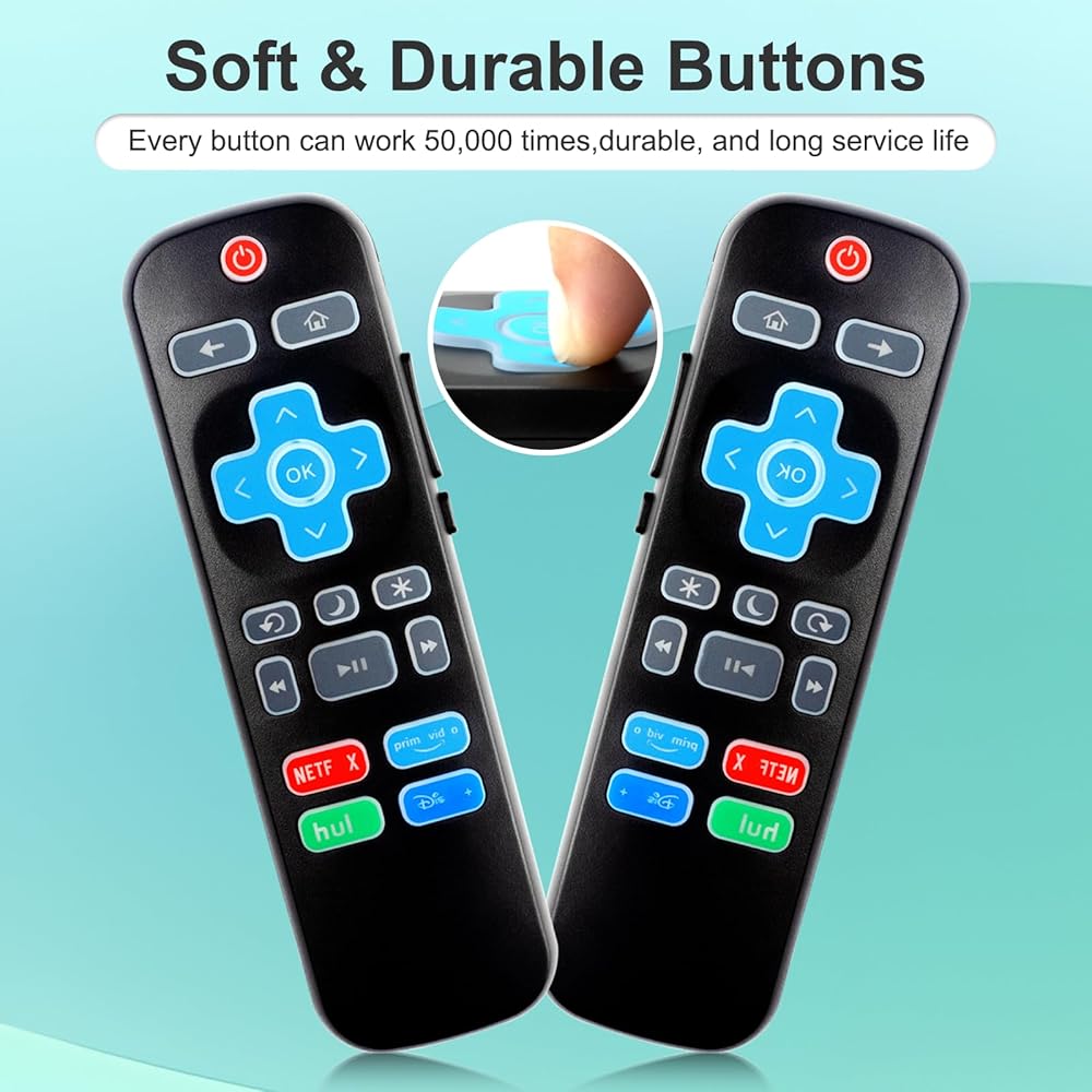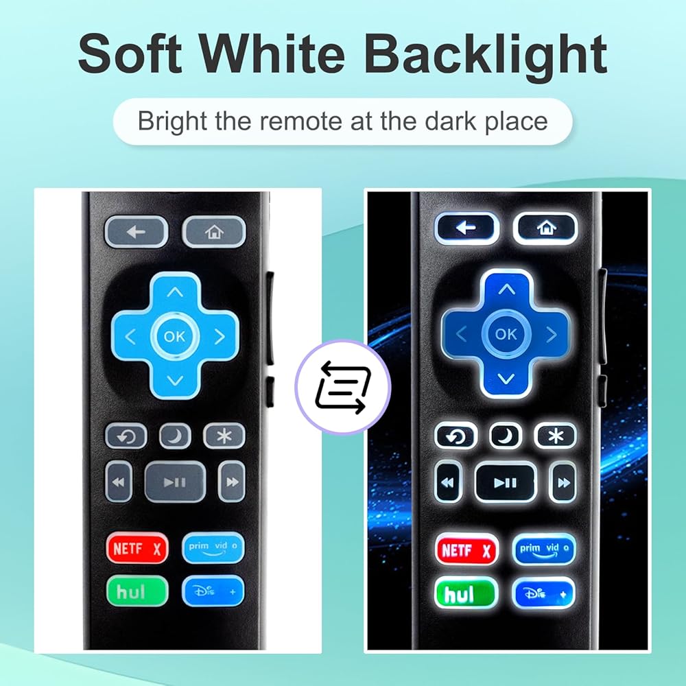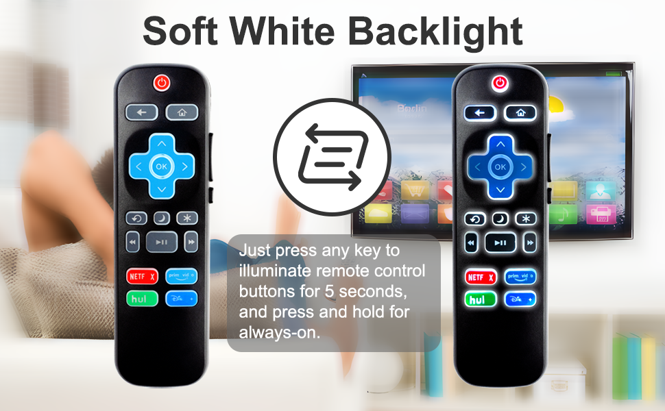 【Backlit Function】Just press any button, it will be bright for 10 seconds, and it will automatically turn off, so you can use this remote for Roku TV in dark environments.