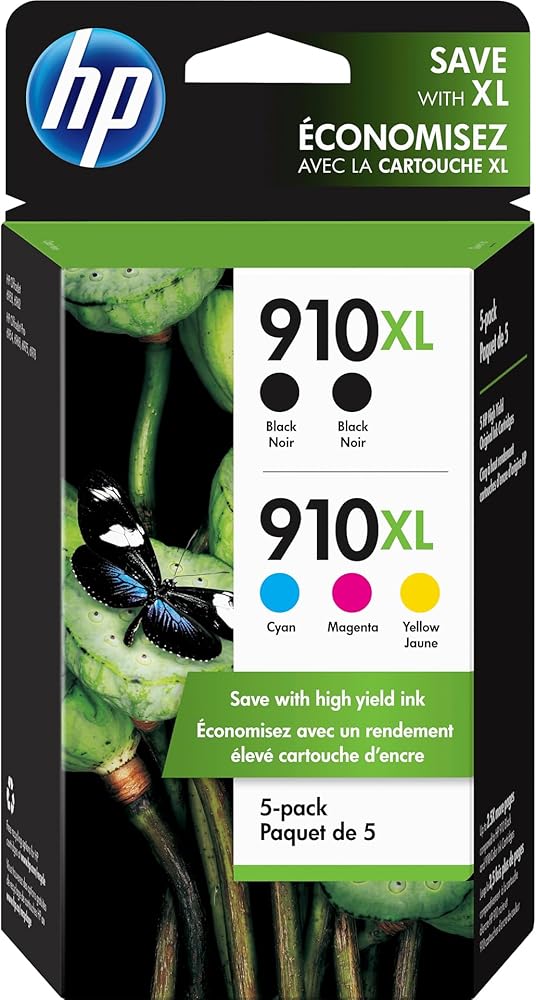 خراطيش حبر HP 910XL (6ZA58AN) (أرجواني سماوي أصفر أسود) 5 عبوات في عبوة البيع بالتجزئة