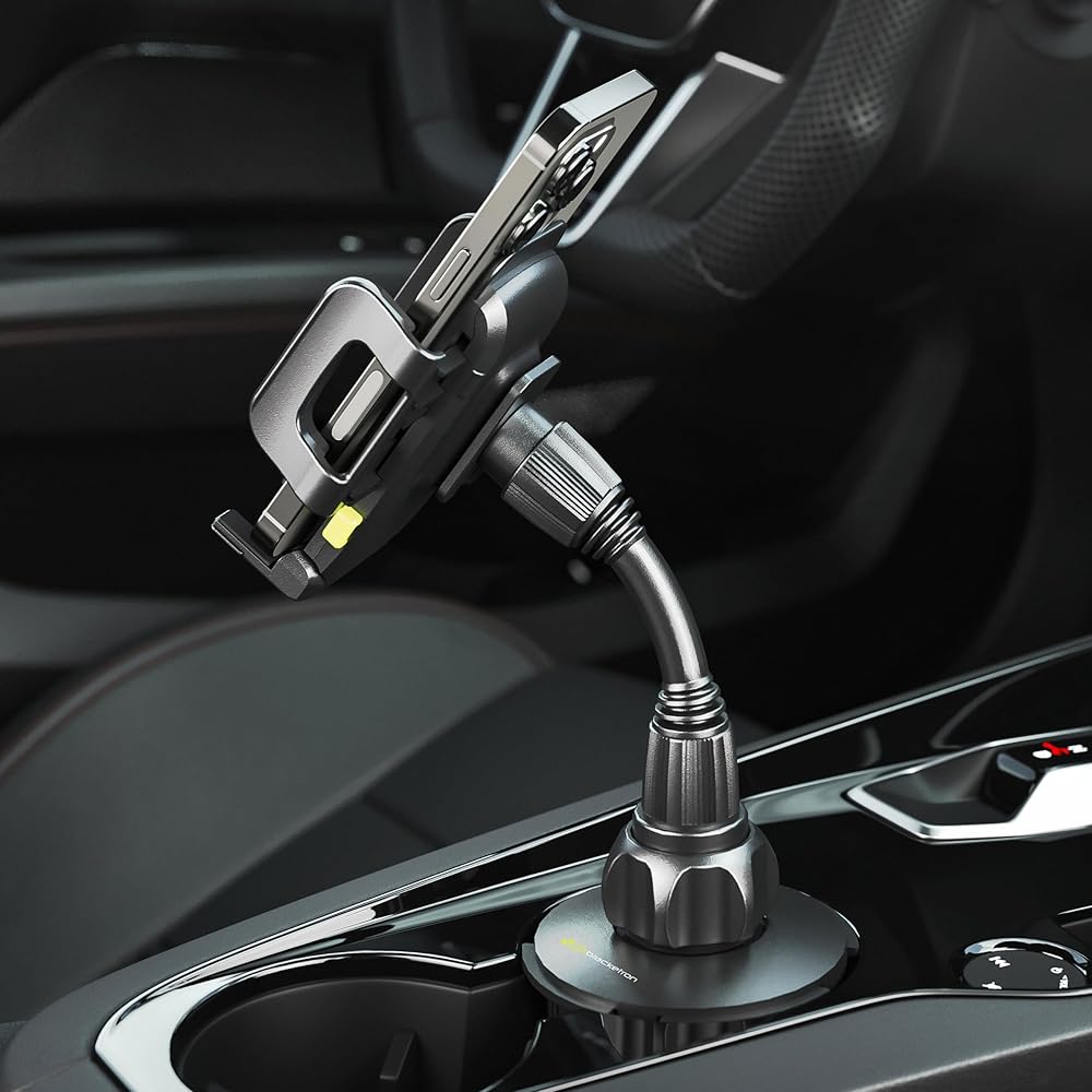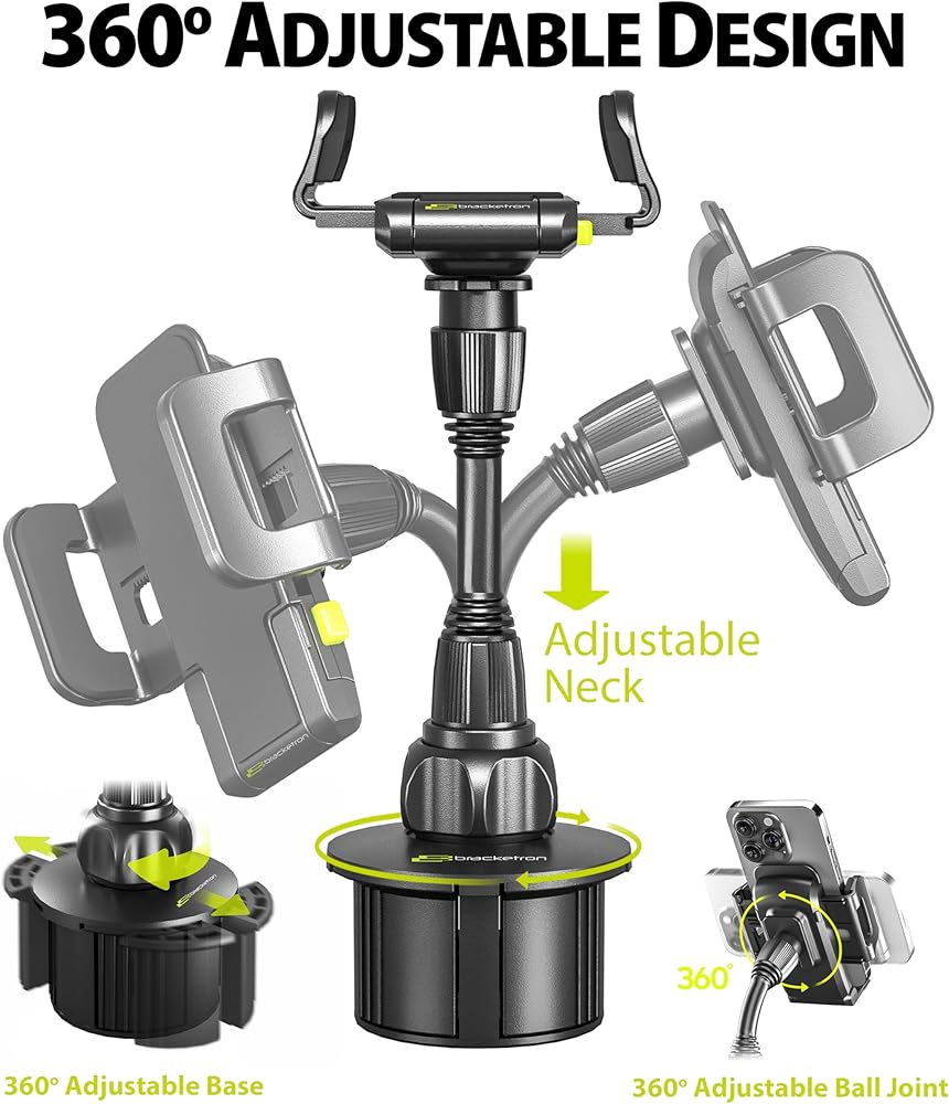 ثبات قوي: يأتي حامل الهاتف حامل أكواب السيارة من براكيترون مع أرجل دعم قابلة للطي وموسع حامل أكواب قابل للتعديل للسيارة مع بطانة من السيليكون، مما يضمن ملاءمة مريحة لمعظم حاملات الأكواب القياسية حتى 3.75 سم.