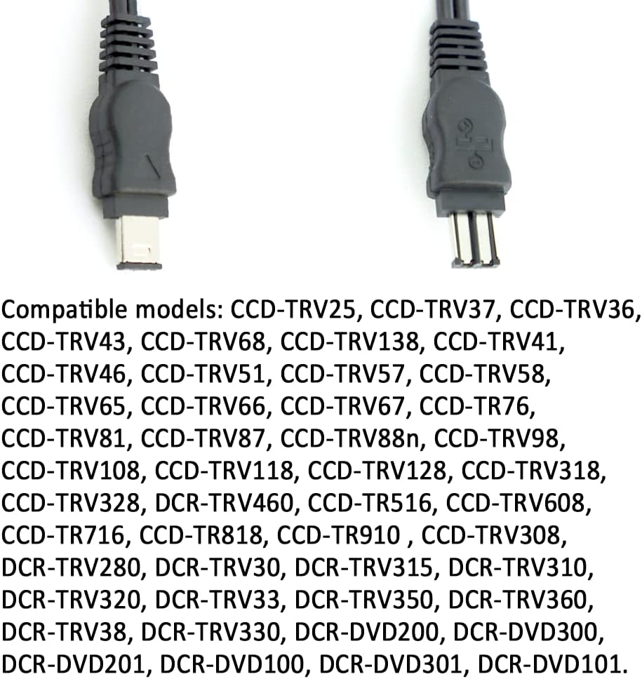 • 【COMPATIBLE MODEL】compatible with Sony Handycam camera DCR-TRV, MVC-FD, CCD-TRV ,CCD-TR, DCR-PC, DSC-S/F ,HC VX Series .for DCR TRV128 TRV103 TRV130 TRV150,CCD-TRV108 TRV118 TRV128 TRV308 TRV77 TRV88 TRV9X TRV6E , CCD-TR748 TR648 CCDTR648E CCDTRV238 CCDTRV238 DSC-S30 DSC-F707 DSC-F717 DSC-F828,DCR-DVD 301 VX2100 ,HDR-FX