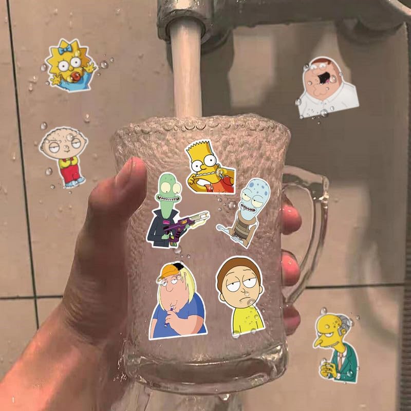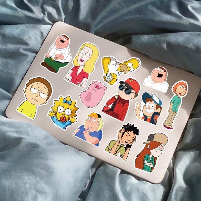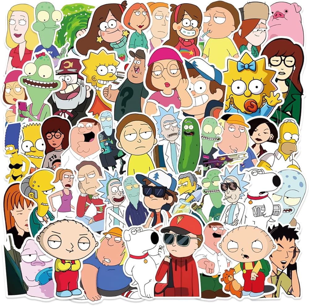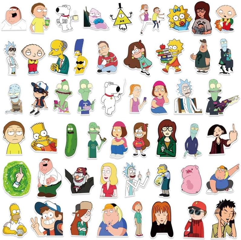PIRTYNNUF 50 قطعة من ملصقات الرسوم المتحركة الرسوم المتحركة حزم ملصقات رائعة لأجهزة الكمبيوتر المحمول وحافظة الهاتف وزجاجة المياه وممتص الصدمات على لوح التزلج والأمتعة وملصقات الرسوم المتحركة للمراهقين والبالغين