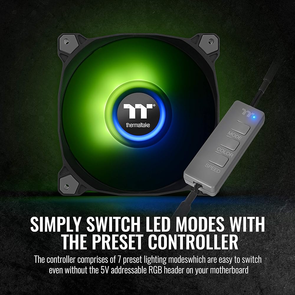 وحدة تحكم ARGB تناظرية: وحدة تحكم منخفضة المستوى مضمنة للمستخدمين الذين ليس لديهم لوحات أم كابل RGB. اختر من بين 8 ألوان محددة مسبقًا (أحمر، أصفر، أخضر، أزرق مخضر، أزرق، أبيض، أرجواني، وقوس قزح)، 7 أوضاع LED ووضع إيقاف التشغيل (موجة، ضوء كامل، طيف RGB، إيقاف، تدفق، تموج، نبض، وامض). و 4 سرعات LED