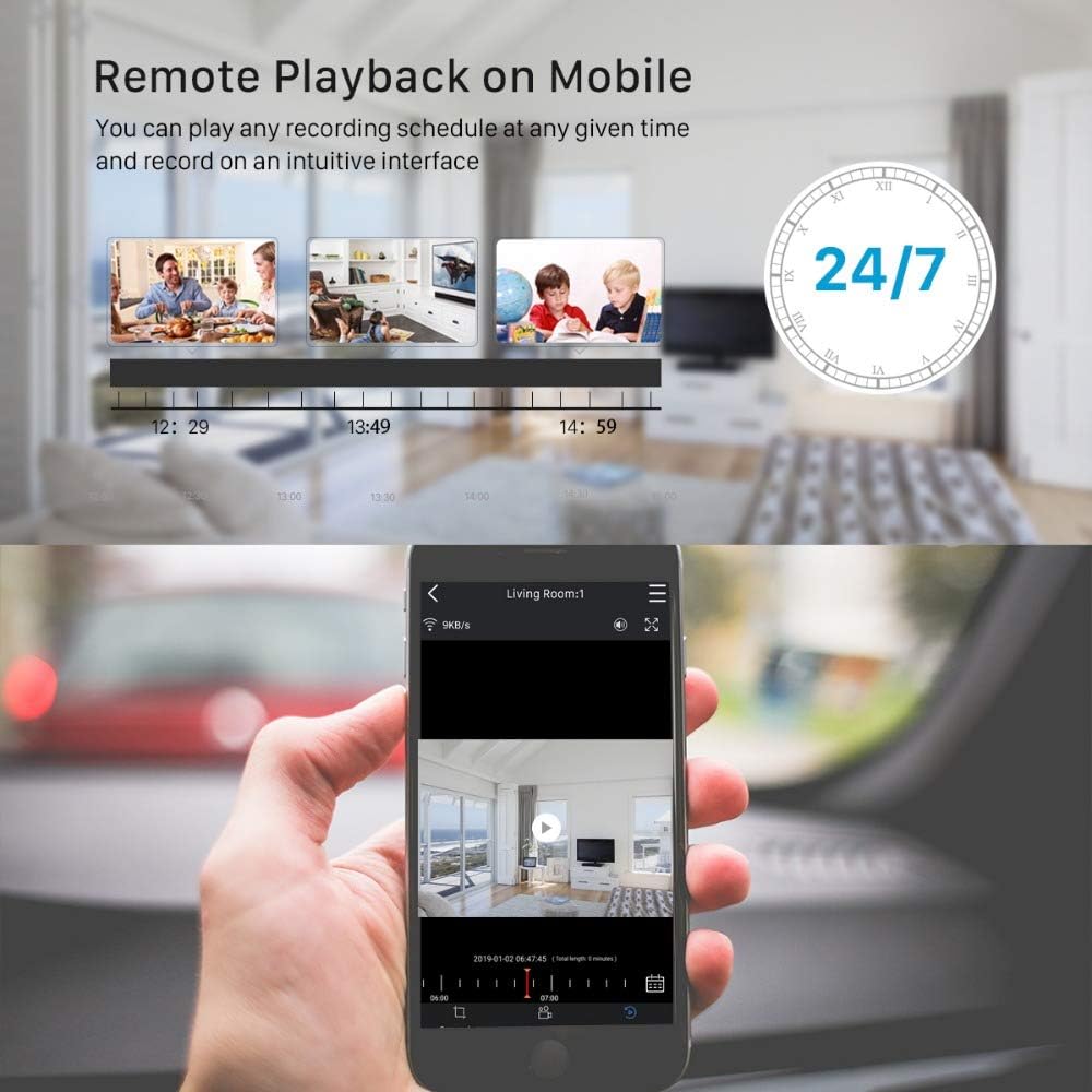 اتصال WiFi 2.4G موثوق به: إعداد WiFi سريع عبر تطبيق الهاتف المحمول "Eseecloud" على هاتف iPhone أو Android الذكي. يمكن الوصول إلى البث المباشر عبر أجهزة iOS/Android/برامج الكمبيوتر الشخصي (Windows) والكمبيوتر اللوحي. تعد القدرة على التحكم في الكاميرات من خلال التطبيق رائعة وتسمح لك بتحريكها حوالي نصف بوصة لكل تمريرة تقوم بها.