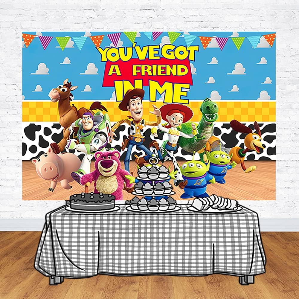 خلفية سماء زرقاء لمستلزمات الحفلات بعبارة «You 've Got A Friend in Me»، خلفيات صور بطابع قصة لعبة، لافتة لحفلات استقبال المولود 59×38 انش