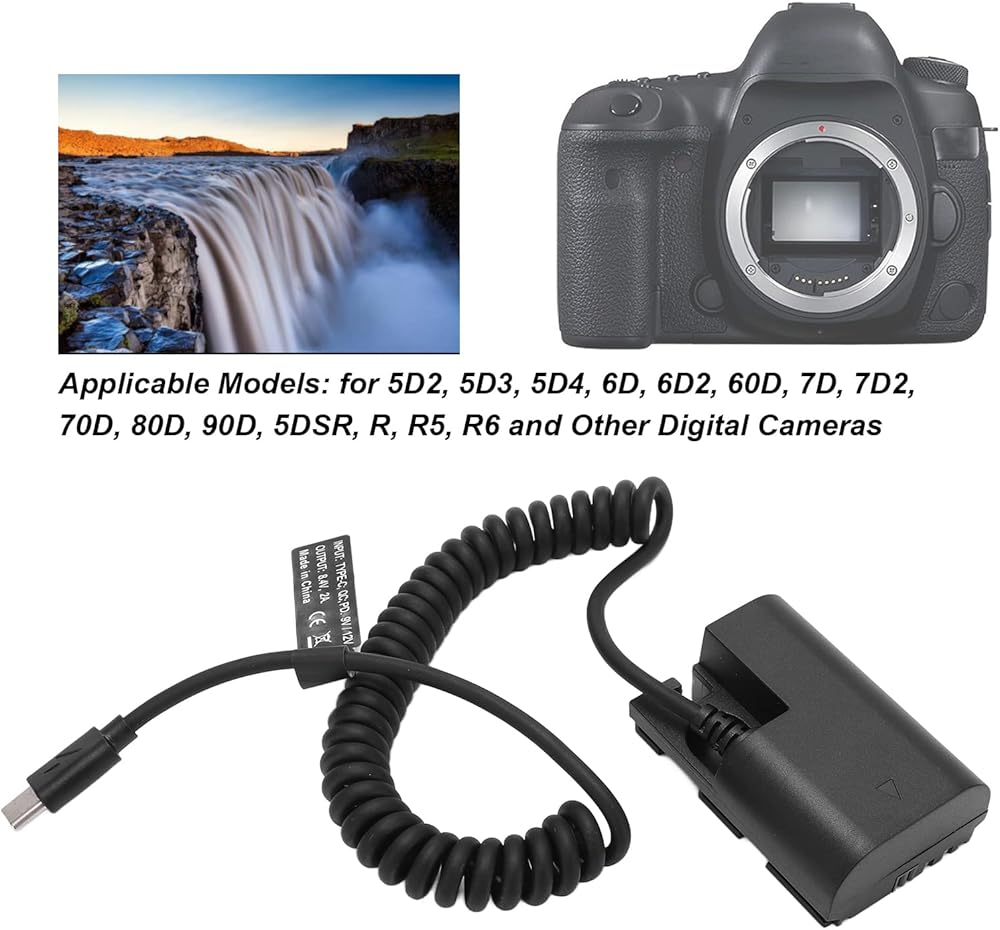 【النماذج القابلة للتطبيق: تم تصميم بطارية DC المزيفة خصيصًا لـ 5D2، 5D3، 5D4، 6D، 6D2، 60D، 7D، 7D2، 70D، 80D، 90D، 5DSR، R، R5، R6 وغيرها من الكاميرات الرقمية.